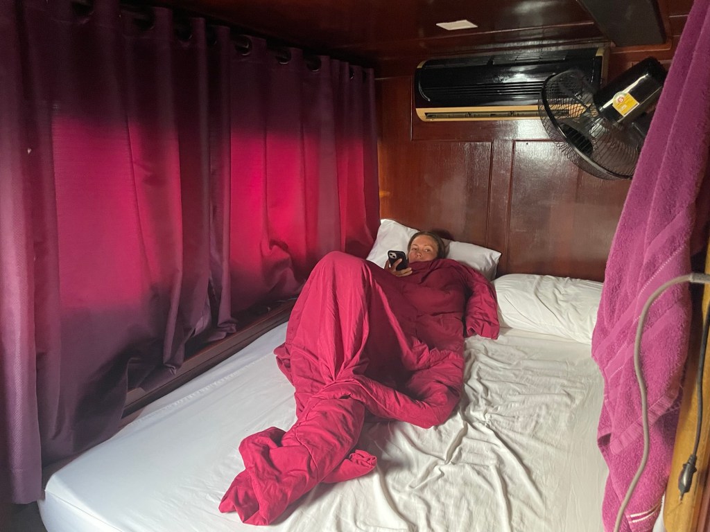 We walked back through the market and went back across the river. This time using the less frequent ferry to Tha Phra Chan. We said goodbye to Tim once again. With lofty hopes to see him again later. We strolled back through the now silenced amulet market to reach the boat. In our cabin we ate some fruit and tried to relax amongst our thoughts of leaving Bangkok in the morning.