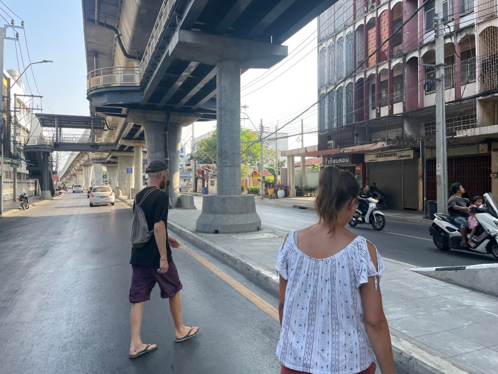 From the museum we headed to the fabled Khao San road. We didn’t have any expectations. There were rows and rows of stalls selling tacky clothes and bags. We’d been hopeful for some interesting food stalls but there was nothing but the typical meat grilling occurring. Not a place worth visiting in our opinion, maybe it was different 20 years ago.
