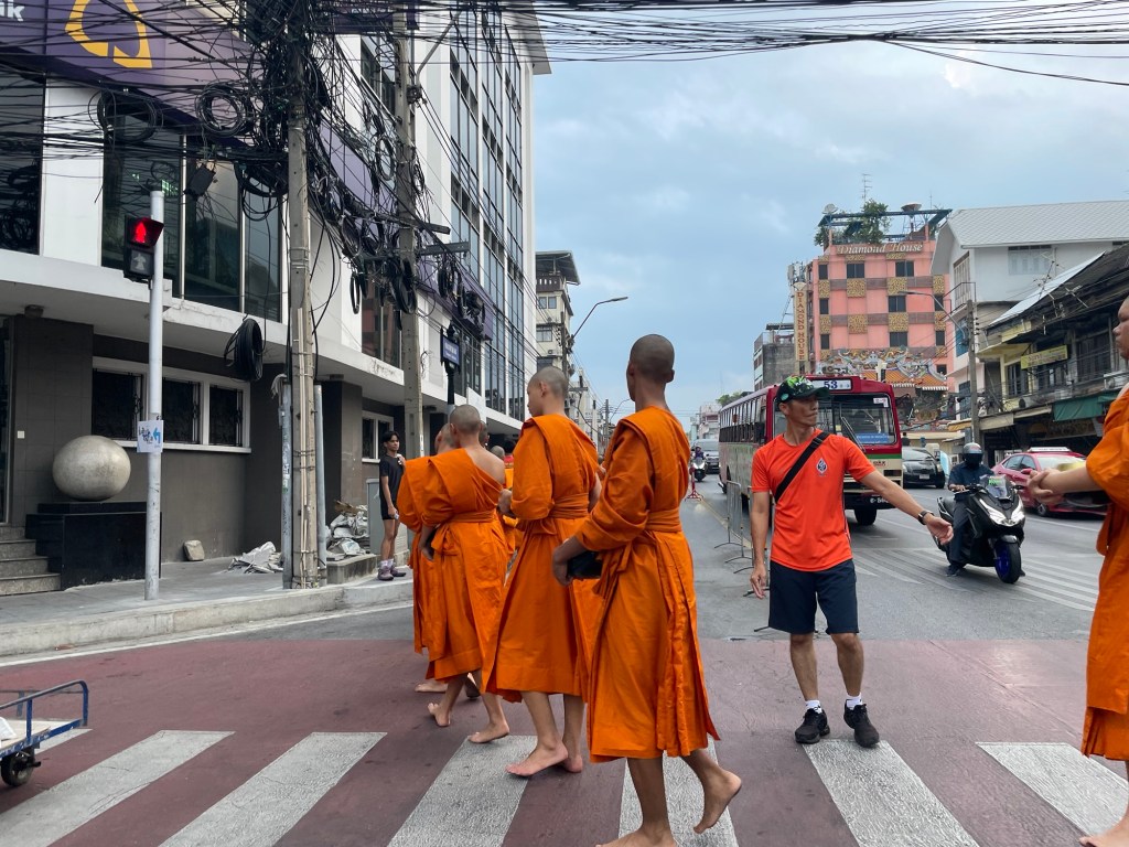 We’d covered 20km and were nowhere near being on a quiet road. Pracha Chuen Road was a very busy road. But it was the best route we’d found that left the city to the north. While we had considered our direction, north or east, to the end of the previous evening, we had decided to go to Ayutthaya. It was once the capital of Siam (Thailand’s name until a decree in 1939). Halfway along we stopped and bought some steamed buns. Frankie was cursed, like a werewolf, and suffering through the need to periodically stop for the facilities.