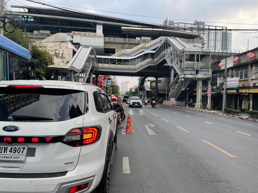 We woke up early, but probably not early enough. It was already 6:40am when we left. The roads were manic. There was so much already happening. Cycling under the skytrain felt unreal. It was like something out of Batman. Hundreds of huge concrete pillars.