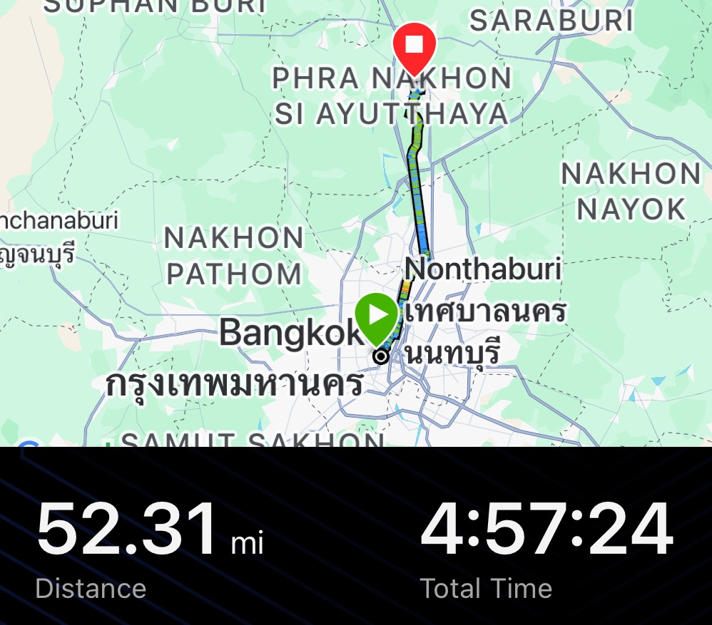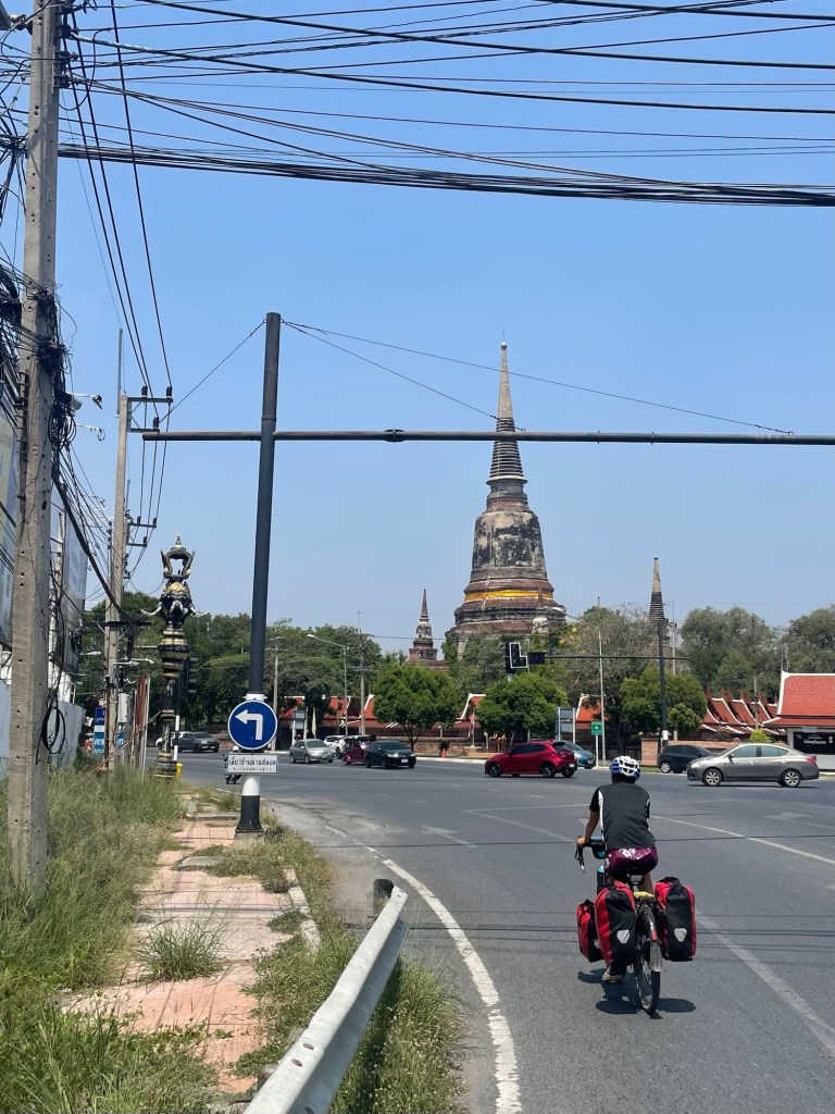 With 3km left to go we braved the heat once more. Our brake levers were hot to the touch. It was an annoying round the houses way to access the bridge across the Pa Sak river. Ayutthaya is an island which marks the confluence of the Chao Phraya and Pa Sek. Once across the bridge we arrived at V-House. Our safe haven from the heat. We checked in and then started reading about the earthquake. A 7.7 magnitude in Myanmar. Bangkok had suffered some serious damage, including the collapse of a skyscraper under construction. We felt fortunate to have already left.