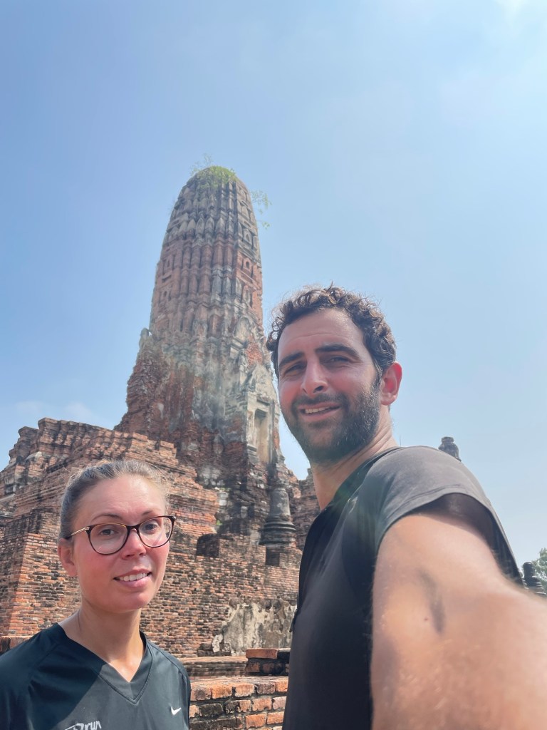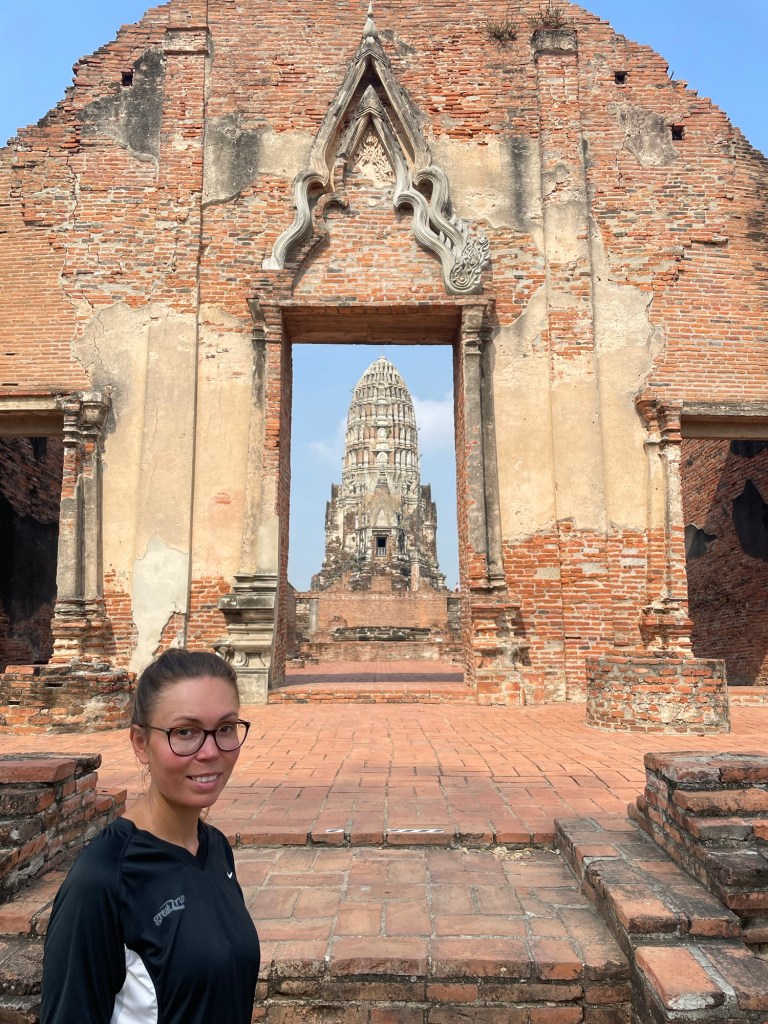 Literally on the other side of the road was Wat Ratchaburana. Another ancient temple, this time with a restored prang that we could go inside. There was a sealed off lower crypt as well. While utilising the breeze that flowed through the towering brick structure, we spoke to a Thai lady with her mother. She actually lived in Sweden so she had some English. We take every opportunity to speak to Thai people that we can.