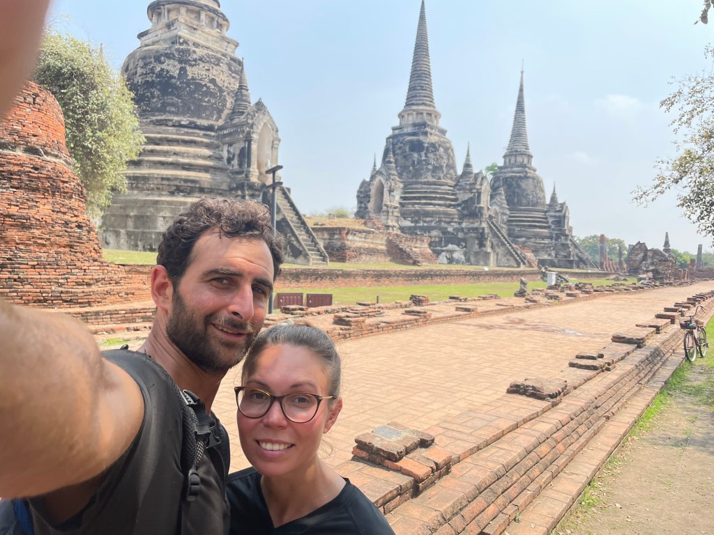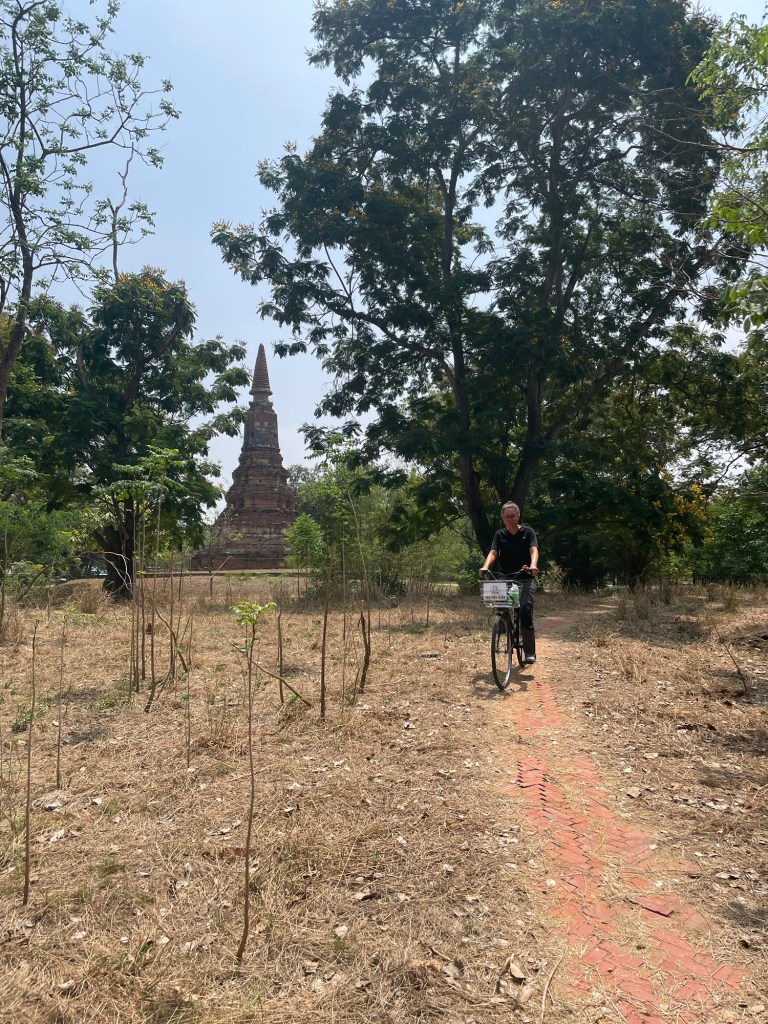 The ancient city of Ayutthaya was mostly contained to the island at its heart. It was absolutely littered with temples, and it wasn’t that small. So we rented bicycles to ride around the city. We weren’t keen on using our good bikes and for £1.20 for the day it seemed reasonable. The bikes were truly awful. We’d hoped to sail around effortlessly but the rattly old bikes weren’t having it.