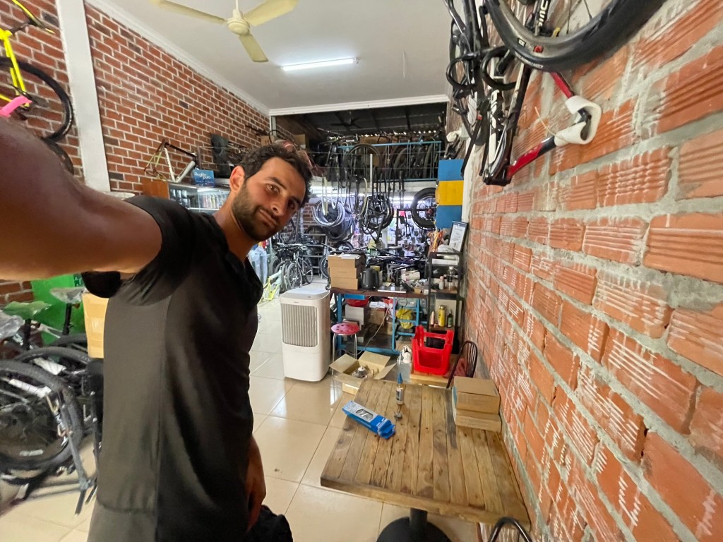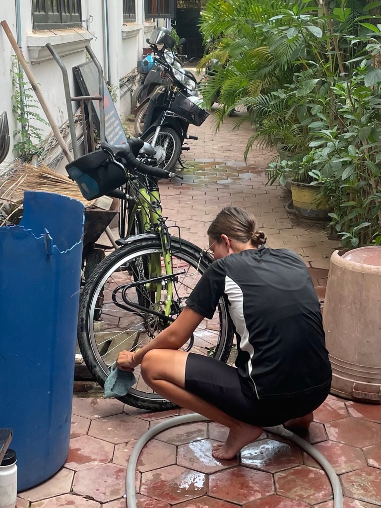 We didn’t get up early but we still woke up early. Frustrating. We had a hot drink before Jonathan ran back to the bike shop to purchase the parts. Two chains, two cassettes, bike lube and a set of brake pads. It cost $158 total. Johnny kept taking a couple of dollars off of each items list price. Not sure how that works. He was paid with two $100 bills and 32000 Riel, then he gave a $50 bill in change. Fun times.