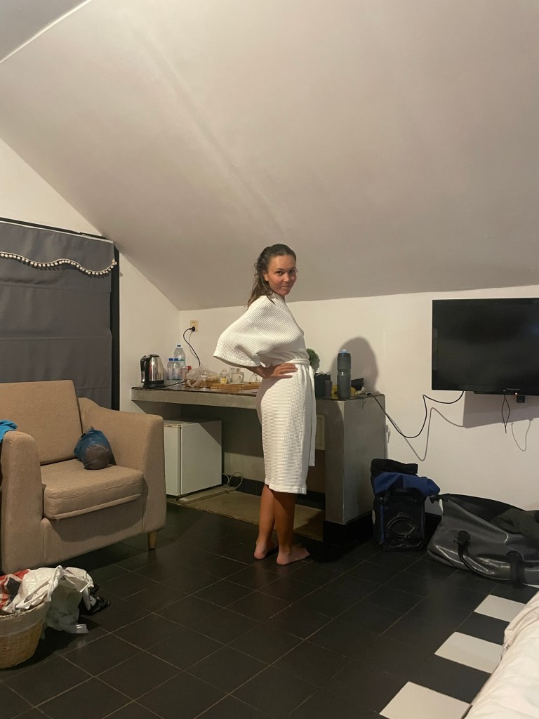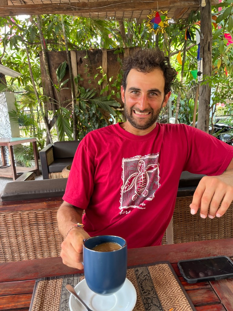 Frankie spent the time updating polarsteps. It’s surprising how long it takes to keep on top of social media. Maybe influencers are working really hard. When Jonathan got back we went to breakfast. It was included. A cup of coffee with choice of homemade cashew or coconut milk. Salad or sourdough each. Fruit salad or juice each. And a choice of main. We had the full vegan and french toast made with cashew milk. The latter included a caramelised banana and maple syrup. It was absolutely amazing to have such delicious food freshly made. We’d been relishing staying somewhere so vegan friendly for a long time.