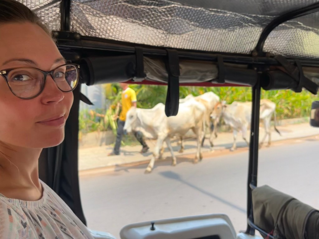 We were going to visit the museum. It had mixed reviews. Instead of walking for 35 minutes in the heat, we took a Tuk Tuk. They’re a bit different here and nowhere near as powerful as Thailand. It cost a mere $1.50. We felt a bit silly giving the driver a 1000 riel tip. It’s only 25 cents.