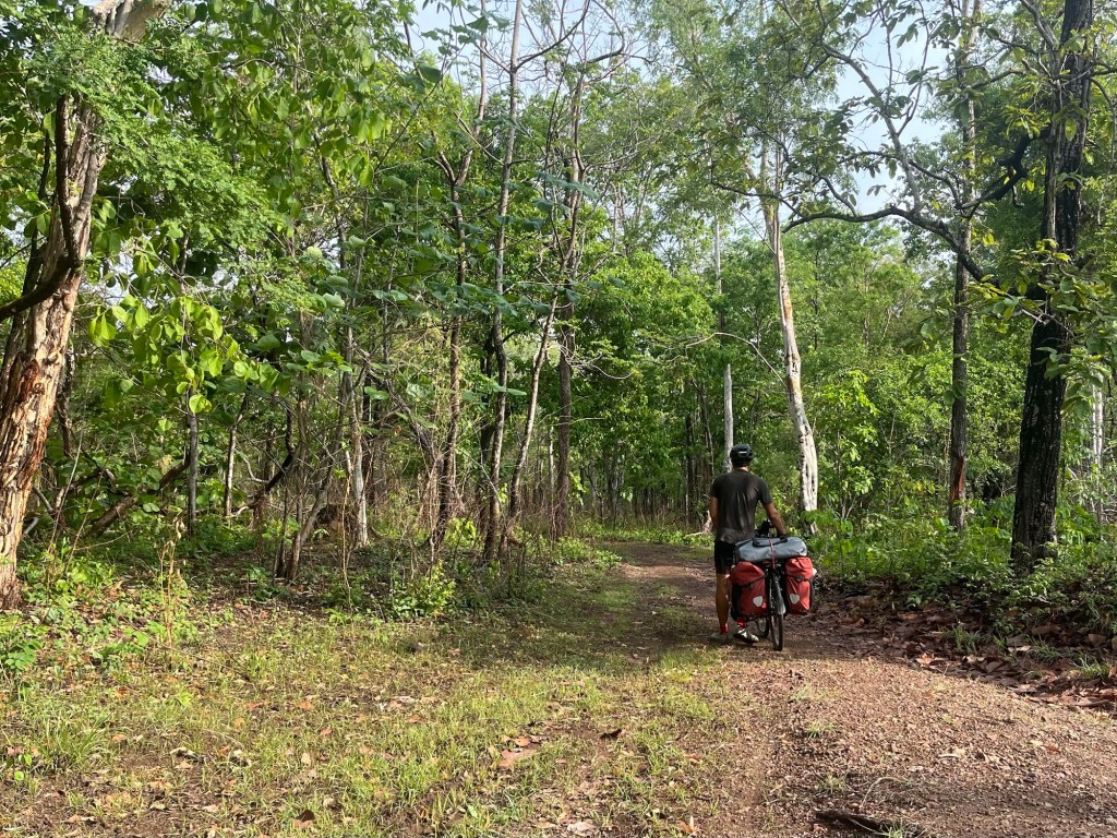We got up proper at 5:15am. We were on the road by 6am. The steep ridge on our left hand side was one of the many quarries that the sandstone was obtained from for temples. In the first hour we only covered 6km. We were faffing around at the market. And also trying to stop the green Surly clicking. It’s mildly annoying and seems to be emanating from the left pedal.