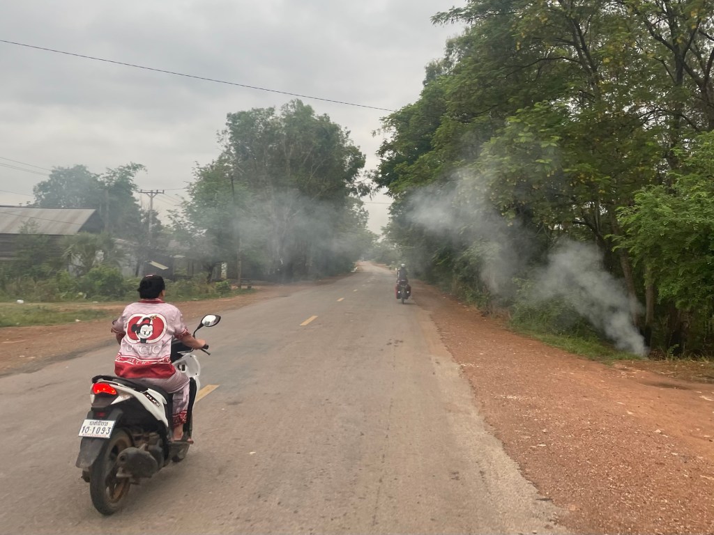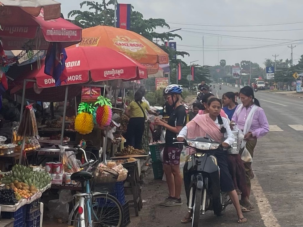 Rural Cambodia was characterised by traditional houses on stilts. Big open fields with zebu grazing. Small vegetable plots. Huge advertising signs. Sometimes it was a very odd mix of old and new. The only cars are big expensive ones and there’s a big financial gap to all the other people riding scooter. Many of the scooters were also falling apart. The massive SUVs continued to drive down the centre of the road, tooting, shoving everyone else out of the way. There were quite willing to run you off the road if you didn’t concur with their priority.