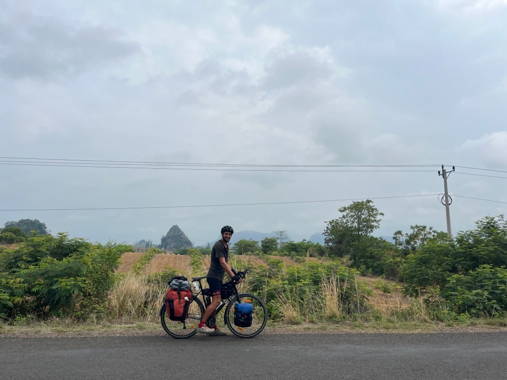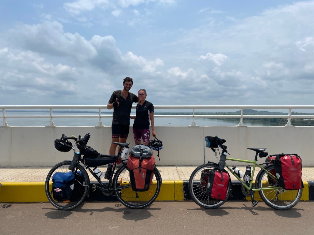 It was starting to get hot. The clouds burning up at about 12 o’clock. We still had 10km left. We’d be having to cross the Mekong soon and would get our first sight of the 12th longest river in the world.