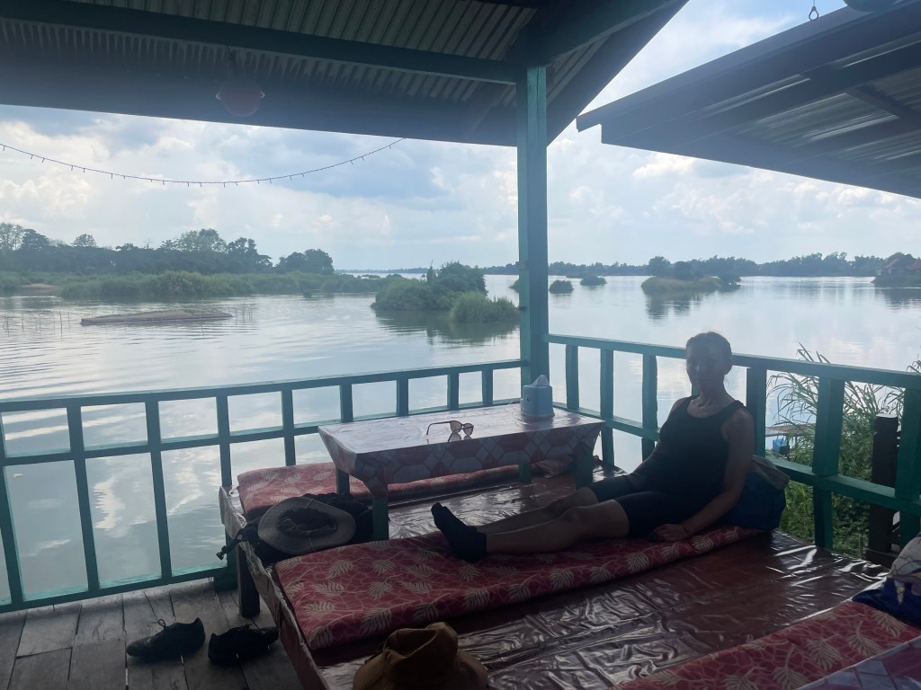 The Khone waterfalls prevent the Mekong being navigable all the way to China. There used to be endangered Irrawaddy dolphins near the islands. The new Don Sahong Dam – that we’d seen on our arrival- had been predicted to, and did wipe them out. Too disruptive for them.