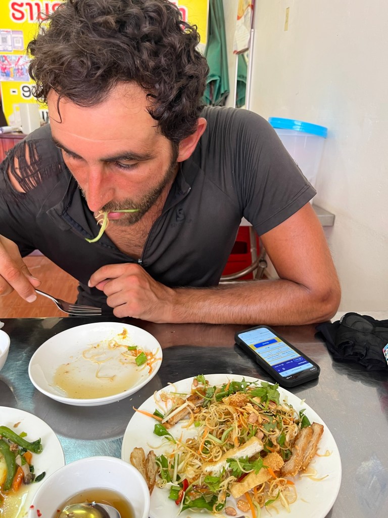 After a few miles of city streets we reached the large market. It was starting to wind down. A 7-eleven was on the corner. There was a vegetarian restaurant nearby. Ha Pham Viet. It was like being back in Thailand again. We ordered a couple of plates of food to eat and a few to takeaway. It was actually more expensive than we thought. Fifteen dollars felt steep. We concluded it was tourist/city prices. The whole trip we had expected cities to be cheaper.