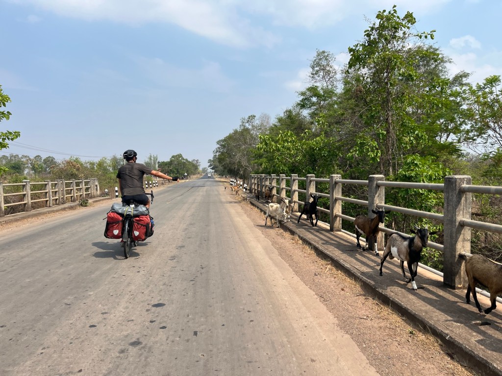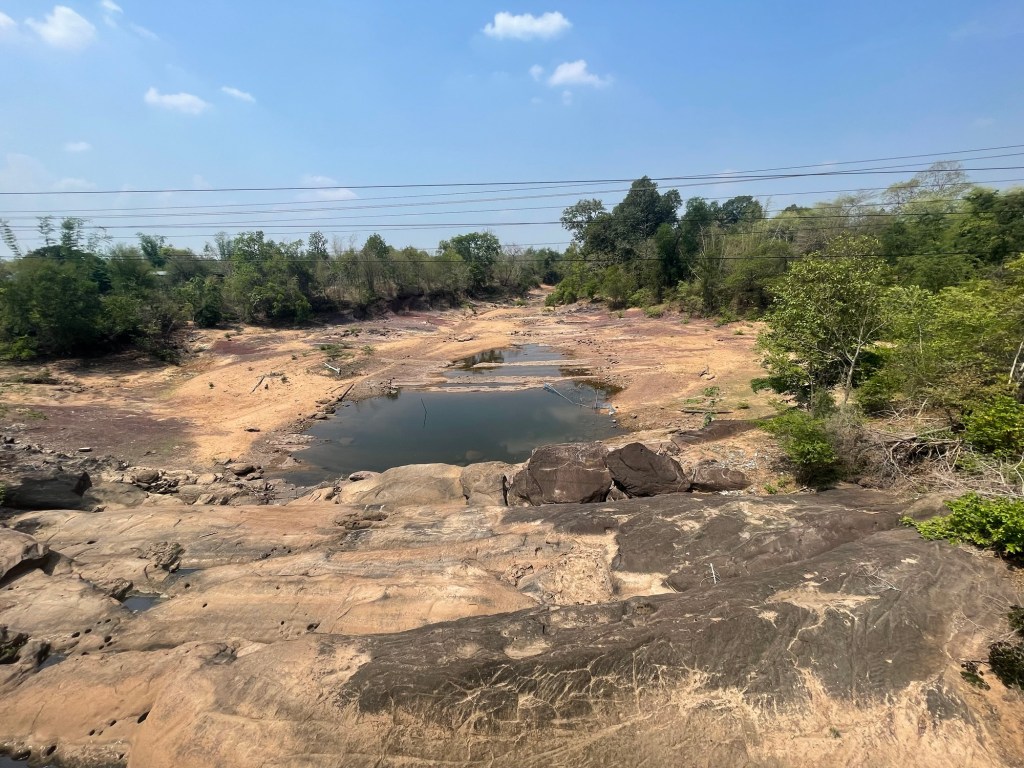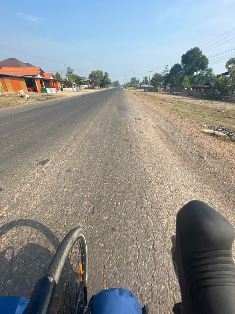 We were stuck on the 13 again today. Another slog. Not turning anywhere made everything a little bit more boring. It was all very similar but we were still enjoying Laos. For one, the people were super friendly. It was almost the second land of smiles. The road varied in quality but it was mostly smooth tarmac. The occasional pothole to navigate around. The traffic was slow. It felt very safe. We were still crossing tributary after tributary of the Mekong. Bone dry river beds usually.