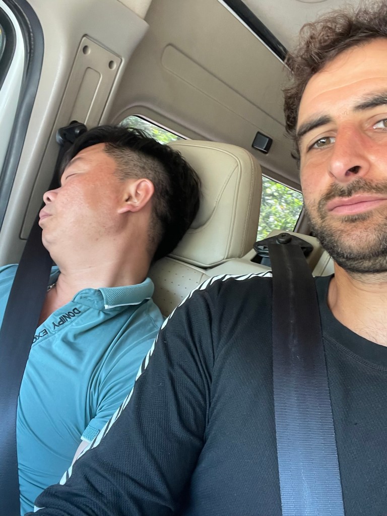 A mini disaster struck. It was only a matter of time that the poor electrics had their way. The usb-c cable had melted to our power-bank. It had only been plugged in for 30 minutes. No more fast charging for us. We were last to the lobby because we had to fiddle with molten plastic. The bus was crammed. Jonathan had to sit in the front with Son, who promptly watched tiktok before falling asleep on him. We were the only ones getting off to go to Chay Lap. A pickup truck was waiting for us. We soon checked back into a mountain room and spent a while washing our clothes and then just milling around.