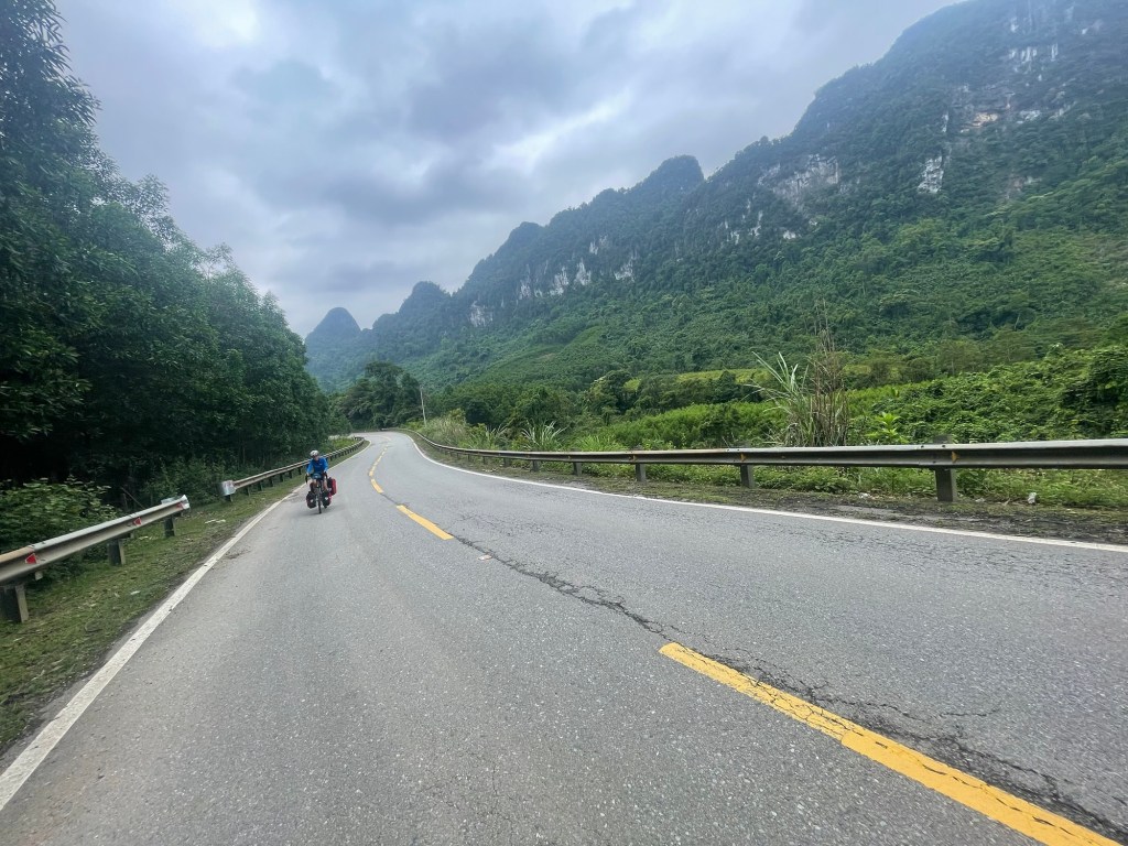 At first we were still riding a road we’d ridden twice before. The wind pushed back. The downhills didn’t feel like relief. In the town we tried to get some more cash. We’d spent 2 million Dong in the last three days and only had a million left. There was no ATM. We then crossed the threshold into new riding territory.