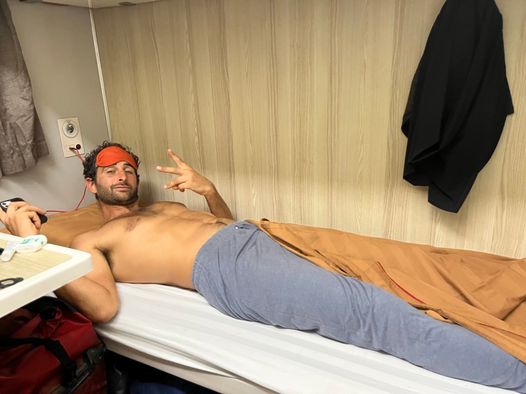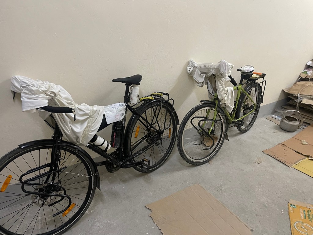 The bike tracking airtags hadn’t moved. Jonathan always fears the worst. He went to look for them. Walking through the carriages he eventually arrived at the staff/cargo area. It was a scene you’d see in a film from 50 years ago. People stretched out in every possible location. Where there weren’t people, there were boxes, crates or something else. A man spotted him and promptly turned him around. Not suitable for people.