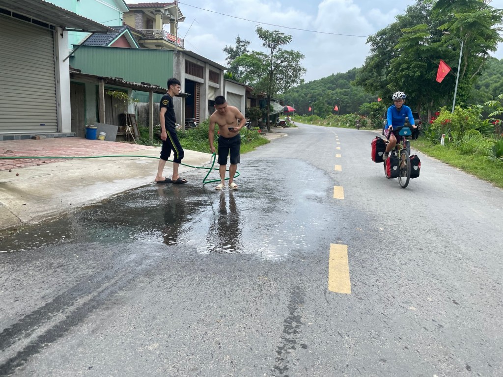 We returned to the owner of the hotel. A man came out of a room at the same time as a woman. They didn’t even look at each other again. The woman rode off on a scooter as the man went to pay. We asked the woman about the possibility of transport to Vinh with the bikes. From there we would take a train to Hà Nội. A reluctant break in our unbroken line from Koh Lanta.