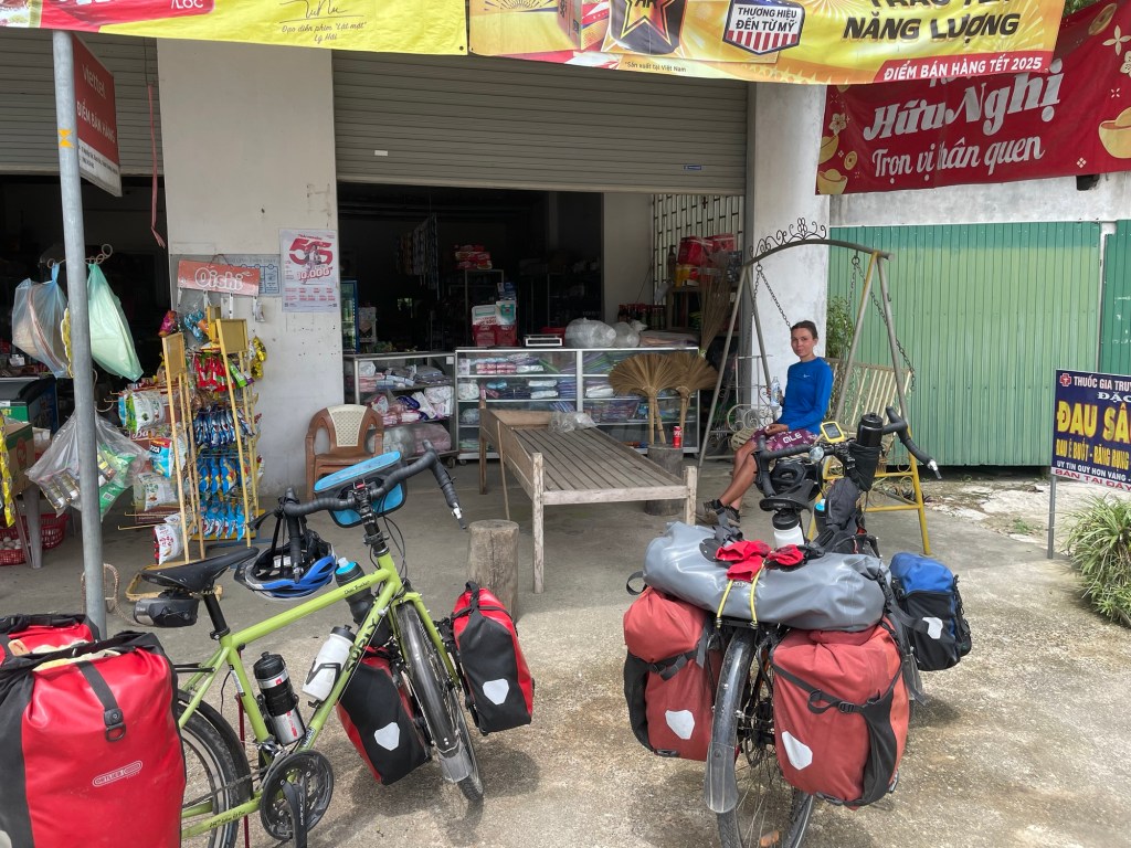 It was too dangerous to ride on. Even though the rim had made it this far. It could be catastrophic. We headed straight to the nearest guest house. A careful kilometre back the way we came. We tried to work out our options. We mused for a while and contacted as many bike shops as we could. We could travel to Vinh. No new rims, just a semi-suitable wheel. A 24 spoke DT Swiss for 8 million Dong. Our only other option was to travel to Hà Nội. A few higher end bike shops. Still not easy to find a suitable wheel though.