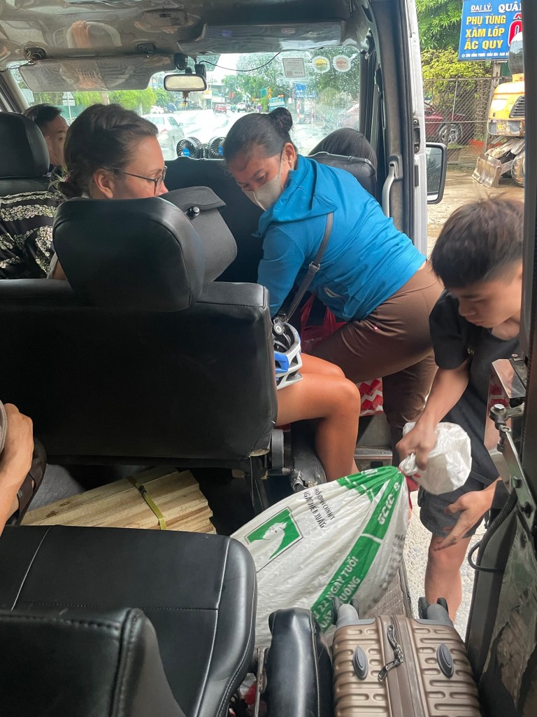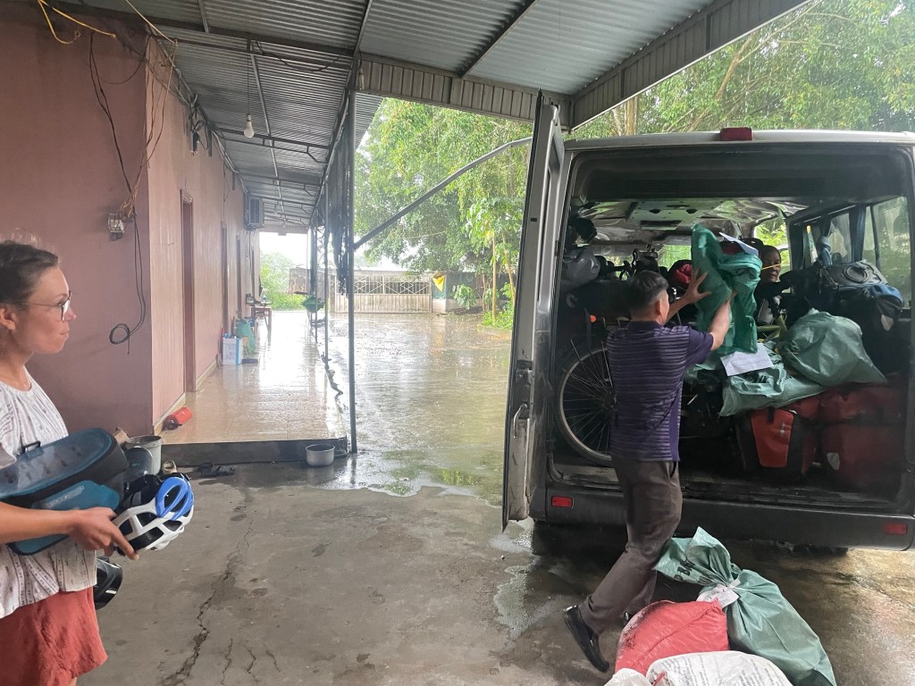 As we waited in our dirty, spider infested hole, the heavens opened. Thunder rumbled deeply. Cracks of lightening divided the sky. And rain poured relentlessly. We stood outside with the bicycles. Anxiously waiting to see what kind of vehicle turned up. Never more grateful for the flexibility of the Vietnamese.