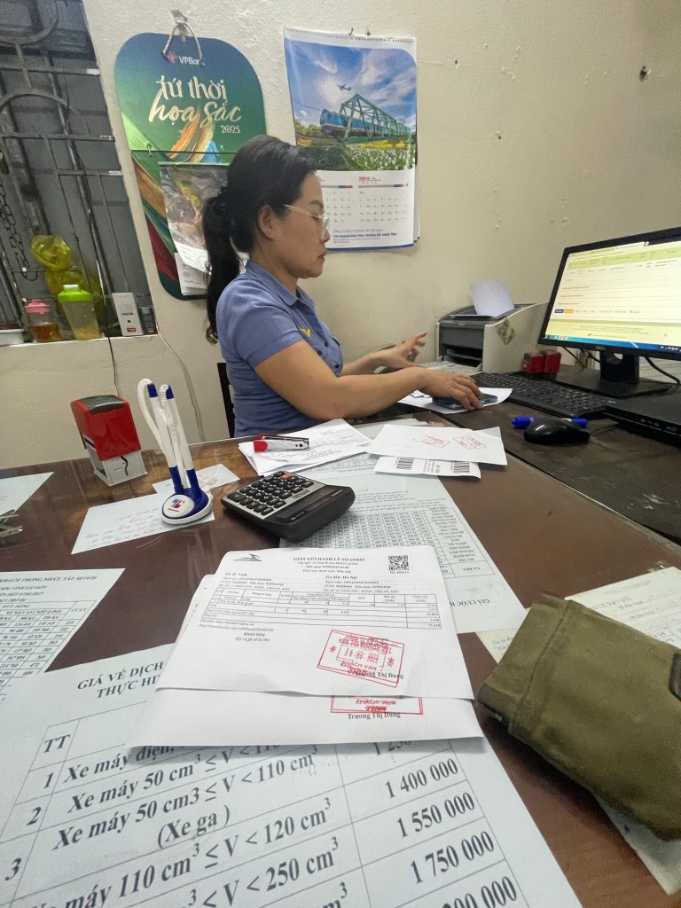 After the forms were printed she stamped them with the date 30/4/25. Jonathan queried it and she handed him the stamp to change it. Then stamped over the top. It looked messy. Jonathan had to attach the waybills and there was no other packing provided. This all took well over an hour. Then we had to buy the tickets for the same train, the SE6. The ‘foreigner’ sleeper tickets were 712k Dong each.