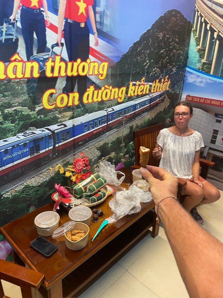 Vinh station was quiet. We’d looked at the process online. We’d need to pay for the bikes and ship them separately. This was confirmed rather grumpily by the passenger ticket saleswoman. Jonathan went to the cargo office. A small dingy couple of rooms near the station. Another grumpy woman. He tried relentlessly to make her smile. This took just as long as filling out the forms. It was over an hour.