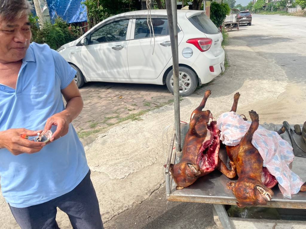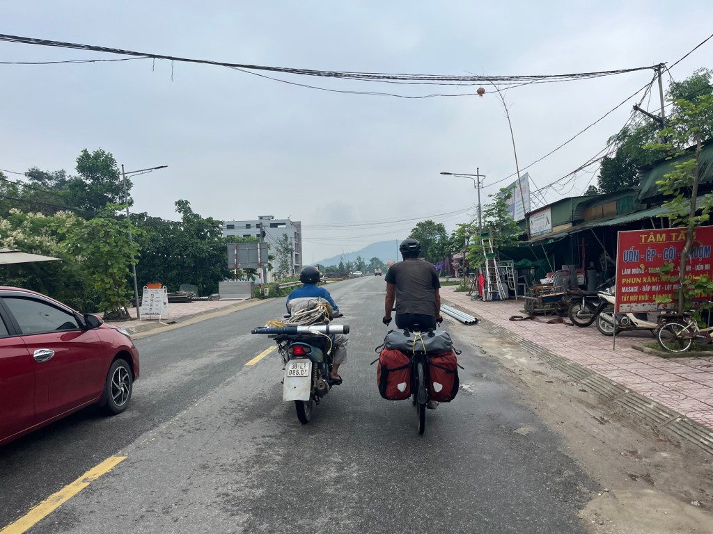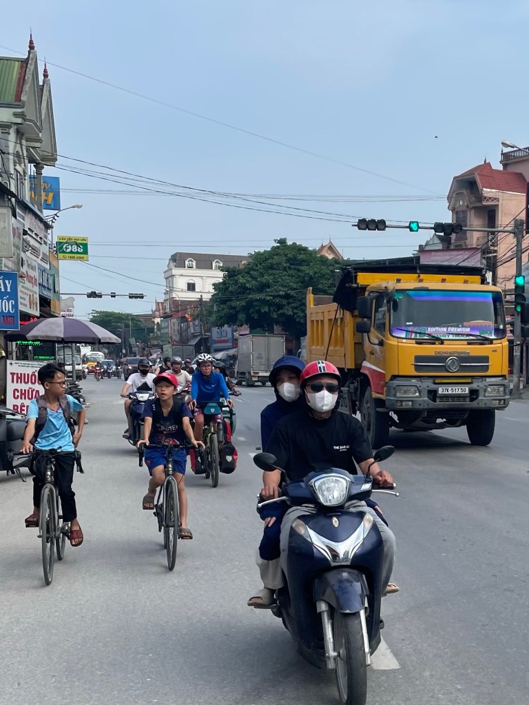 We rode into Dùng in high spirits. There were so many joyous interactions with people. Young girls making fake cycling movements as they passed on their electric scooters. A man laughing at Jonathan as he sounded his pretend horn “Meep, meep!” The traffic just pulling out, without even so much as a hint of looking first.
