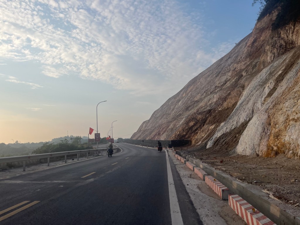 It was a nice cultural experience. We expected very little, so it was an always going to be an improvement. We looked at a couple of routes and agreed we wanted to head back towards the Ho Chi Minh highway. We really had taken a big detour just for the buffet. No regrets. The roads out of town were very busy. They were stupidly disorganised and chaotic. People just overtake and then work out the details later. We had a nice landscape in front of us despite the busy roads. So much rice it was ridiculous.