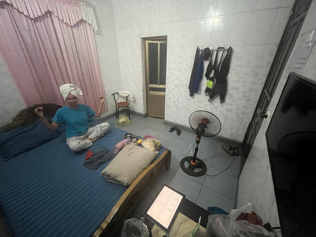 It was hard to find a hotel. There were many, but they all had bad reviews. Dirty, bad tempered hosts, overpriced. We decided to try a place that was mislabelled on google as a Vacation Agency. We went past the flourishing market, and turned into their expansive downstairs garage. A woman came out. The moment of truth. Would she be friendly or not. A smile. It’s all that mattered really. We had a box for 200k. We set about washing our clothes. They were filthy. Two long days in the saddle, without a good wash. We didn’t know if they would dry by the morning. We had no choice.