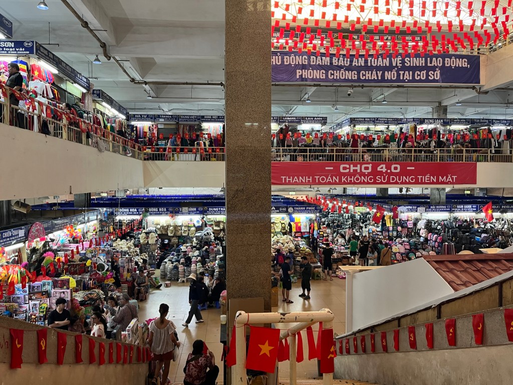 We gave up and explored the fruit and nut market, Chợ Đồng Xuân, next door. It was an improvement. The shops had clearly delineated physical structures. Large see-through plastic sacks of cashews and walnuts. There were big woven sacks of dried mushrooms. Every stall had essentially the same thing. We ignored the stalls at the front and went deeper. Finally our hunt paid off. A stall with displayed prices.