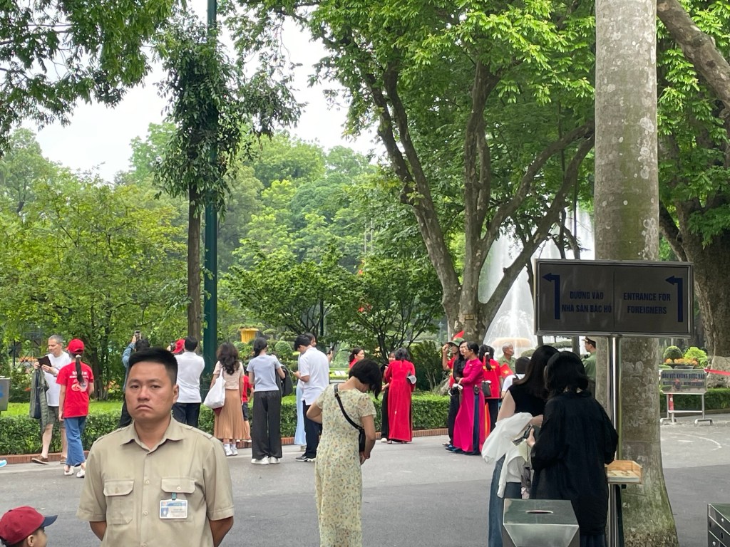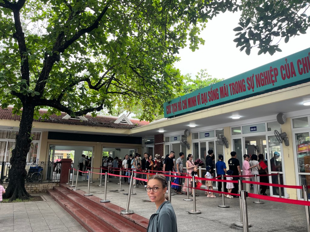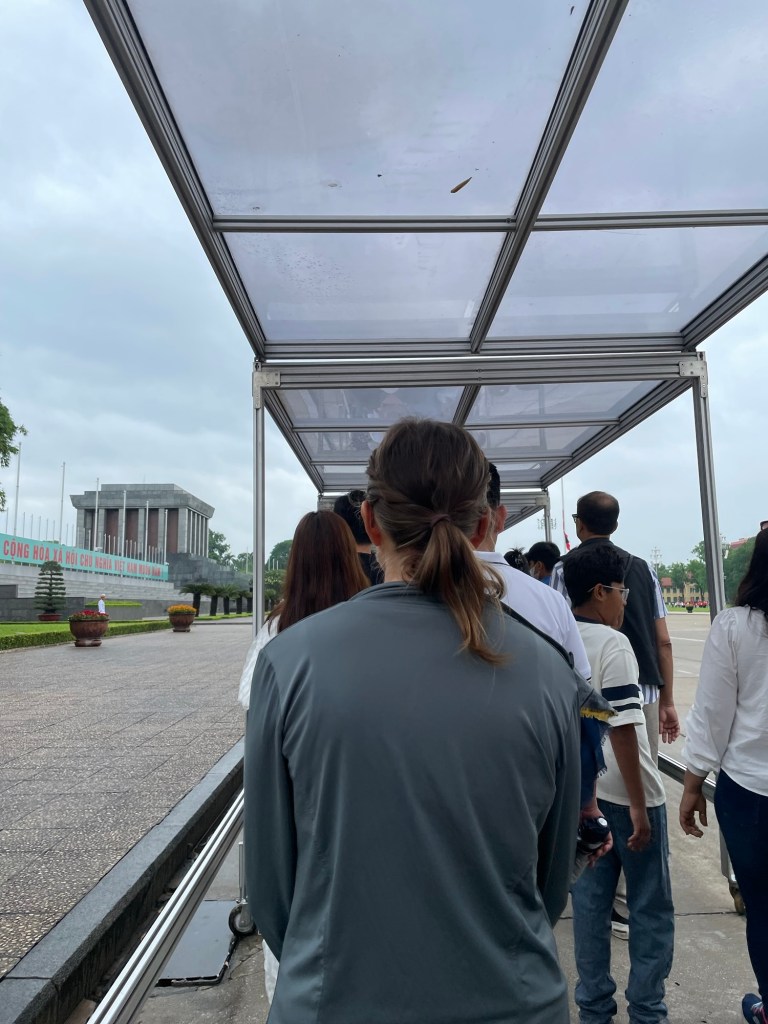 It was Sunday and there was the expected commensurate queue. There was no charge and we went through security before joining the line. The people were 99.9% Vietnamese. This was an important destination for them all it seemed. We moved quickly. It had been honed down to a tee. There was a rain shelter for the entire length. Guards observed to ensure impeccable social etiquette.
