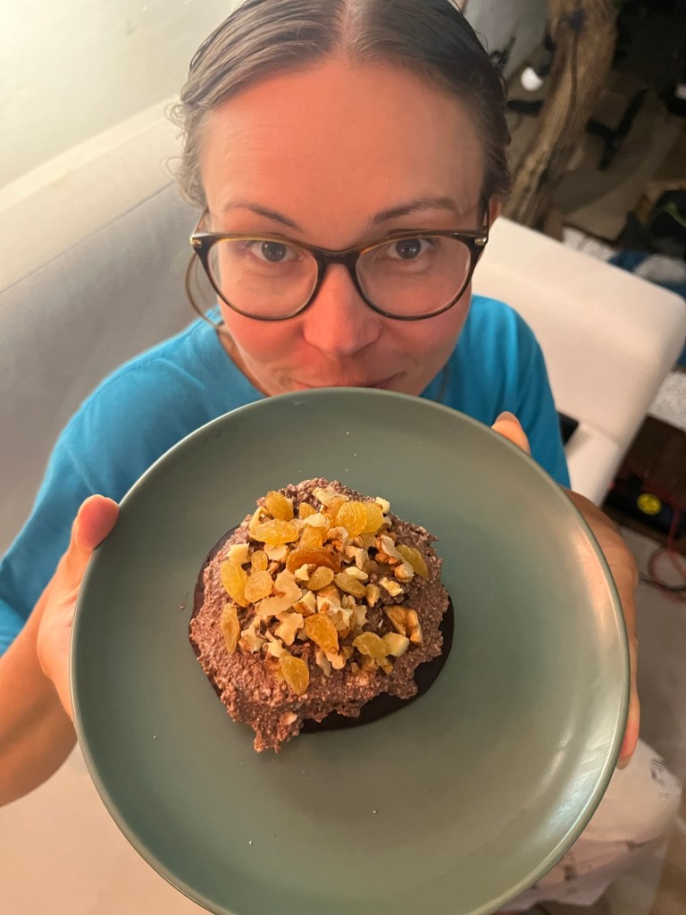 It took about 20 minutes and we took a stroll along the railway alley. It was just like Samut Songkhram except wider, without any market stalls and only eating or drinking establishments. Back home we popped the television on and watched Your Friends and Neighbours, followed by The Stolen Girl and the final episode of Sirens. We nibbled a left over burger each and some chocolate ‘cake’. Frankie had cleverly made the latter by slow cooking pancakes. Our now customary tofu chocolate cream on top. Scattered with nuts. We were living like kings.