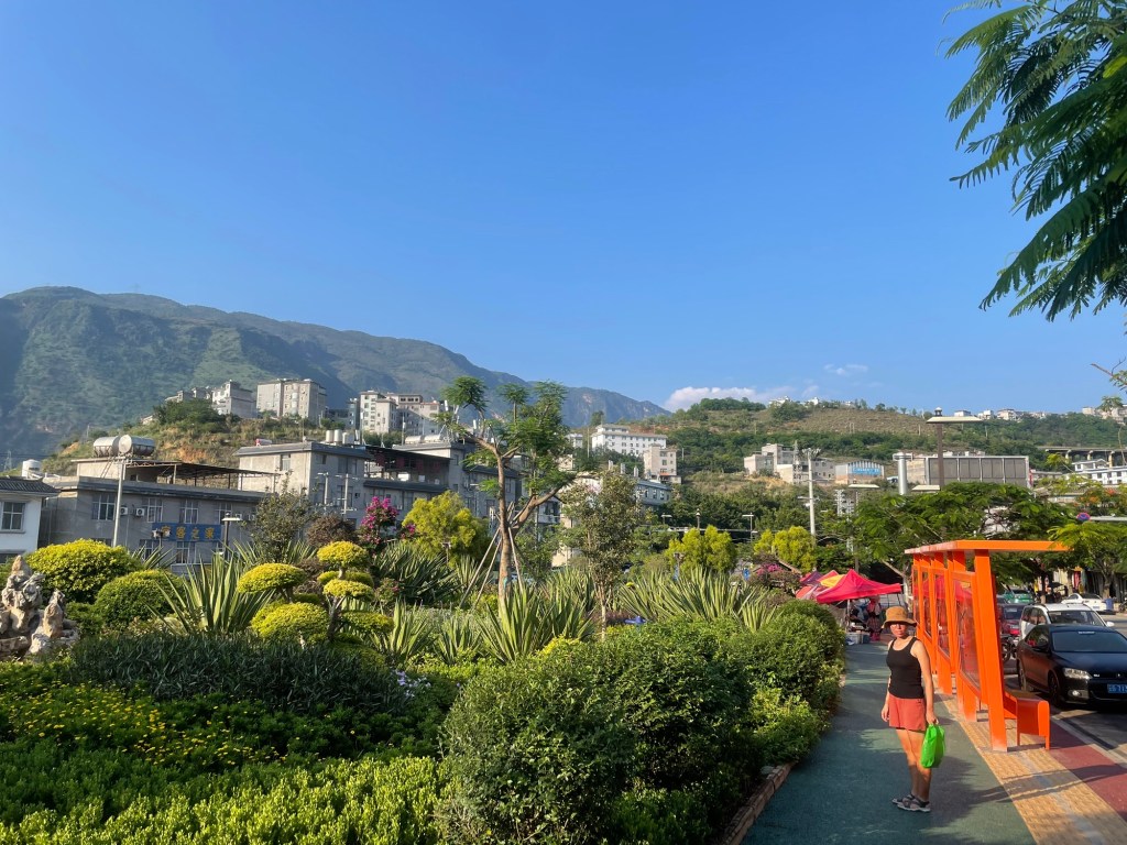 For some reason a lot of the local hotels were ‘sold out’ on trip.com. So we found the nicest one nearby and then asked the shopkeeper to call them for us. The reason for not cycling was that it was either a long way up or down. No unnecessary elevation for us. It worked perfectly. The Wanda Business Hotel was happy to have us. We sailed down the hill and checked in to a smart, clean hotel room. A far cry from the Nha Nghi’s of Vietnam. And only a few pounds more expensive. We had a beautiful view of the impressive, perspective perplexing, mountains.