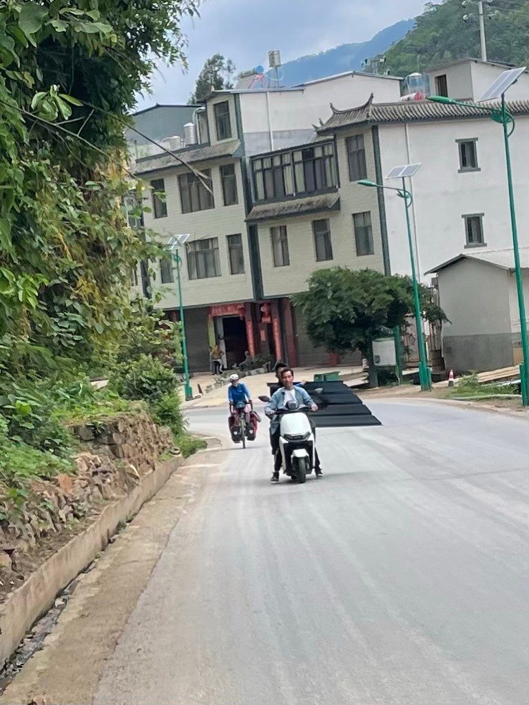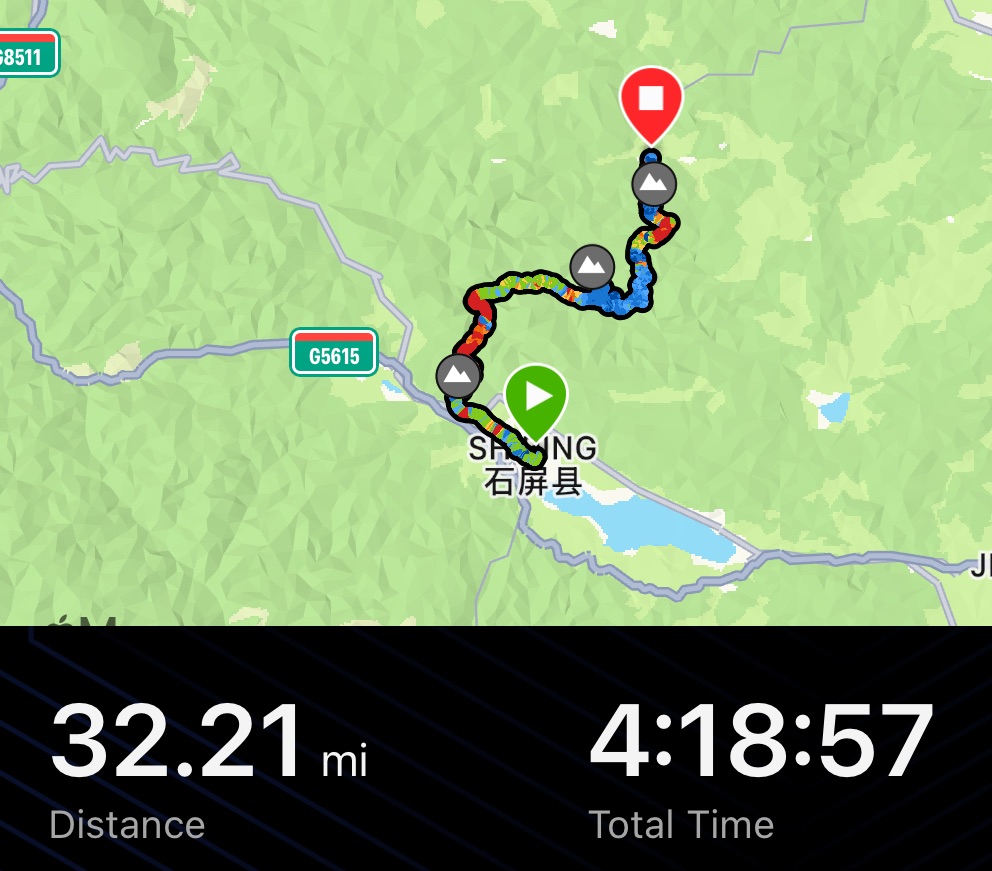 More noodles and steamed buns for breakfast. We didn’t bother leaving till 9:45am. The temperature was a ludicrously chilly 26C. Cloudy too. Shiping was actually an enormous place. As we tried to leave, the shops and restaurants kept going for miles. We decided to take the S212 through the mountains. More climbing and part of the reason for having a rest day.