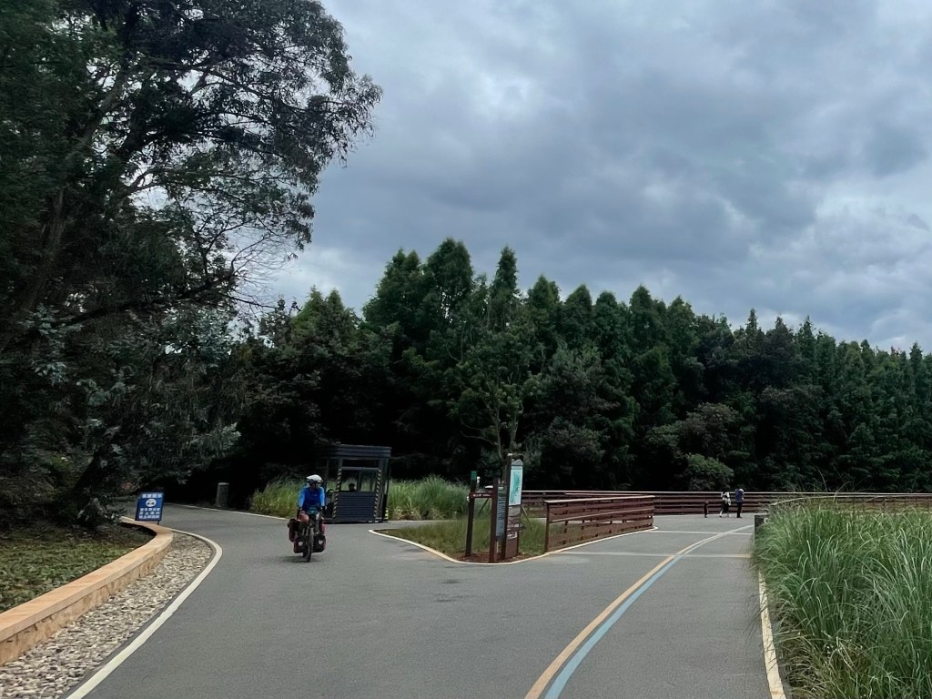 Up ahead was a tunnel. Cyclists were banned. We had to come off the road and use the paving stoned path. At first it looked like it took a rough track and would climb a steep hill. Disheartened we checked Mapy and saw a pink cycle path mapped under the bridge. As we went under the road we saw it. An unbelievably premium cycle path through the wetlands. Back the way we’d come it continued. This beauty was obviously quite new. There was nothing clearly marked on the maps.