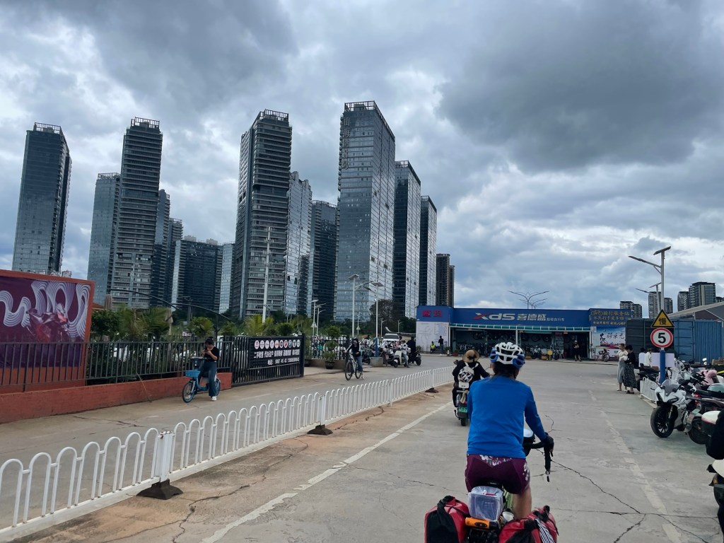 Being back on the road was no fun. The closer into the centre of the enormous city we got, the more traffic negotiation it entailed. Though there was a perfectly segregated cycle path, it was heavily abused by electric scooters. Whooshing past our cumbersome contraptions through every conceivable gap. Soon we were in the thick of it. Clusters of identical skyscrapers. When they build here, they don’t hold back. Enduring 10 miles of it seemed absurd. The traffic flowed at least. Stopping and starting constantly made us tired and frustrated. Scooters were making our lives miserable. The positive side was they weren’t gassing us with fumes. On the whole the air quality was infinitely better than we’d become accustomed to.