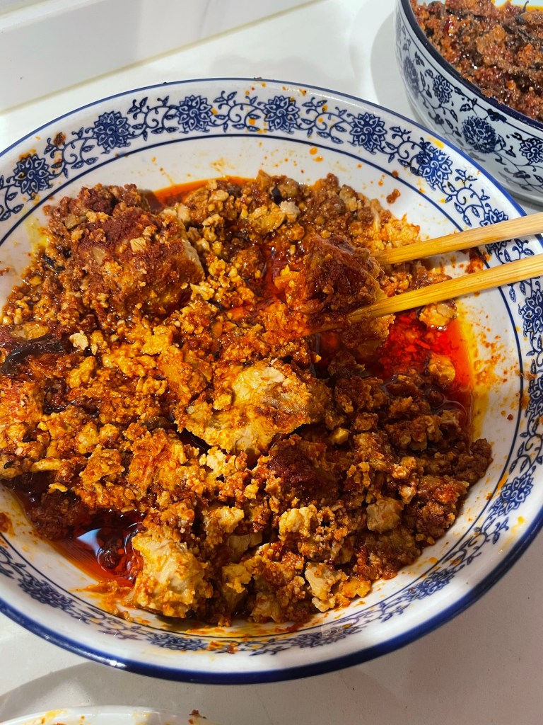 It wasn’t anything fancy and far more expensive compared to the fancy hotels we’d stayed in so far. At least we had somewhere to store the bikes safely. Behind a fence. We locked them and covered them with a tarp. For dinner we went to what was described as a vegetarian buffet but it was all vegan. Several delicious condiments were on offer. One of which we’d seen before but weren’t sure what it was. It tasted suspiciously like blue cheese. We asked a man sitting opposite who educated us. Fermented tofu. Sometimes known as soy cheese. Unbelievable this wasn’t available in the west, it put all other faux cheeses to shame.