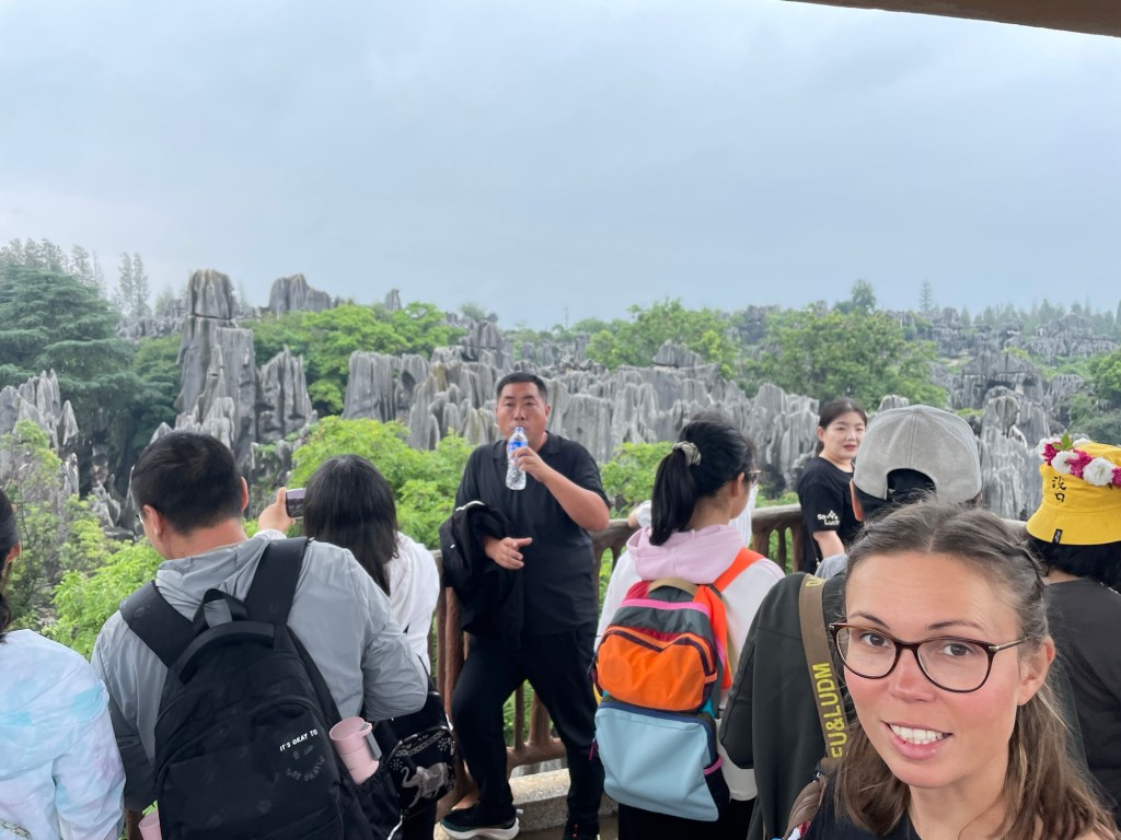 Stone Forest was 80km away and was rated as a 5A class tourist rating under the Chinese system. Yet more limestone. This time resembling a petrified forest over an area of 500km2. We were only going to view a relatively small part of course. Our bus started going the wrong way. Towards Shilin town. We panicked, but it soon pulled into a rest area, we switched buses, sadly to a petrol one.