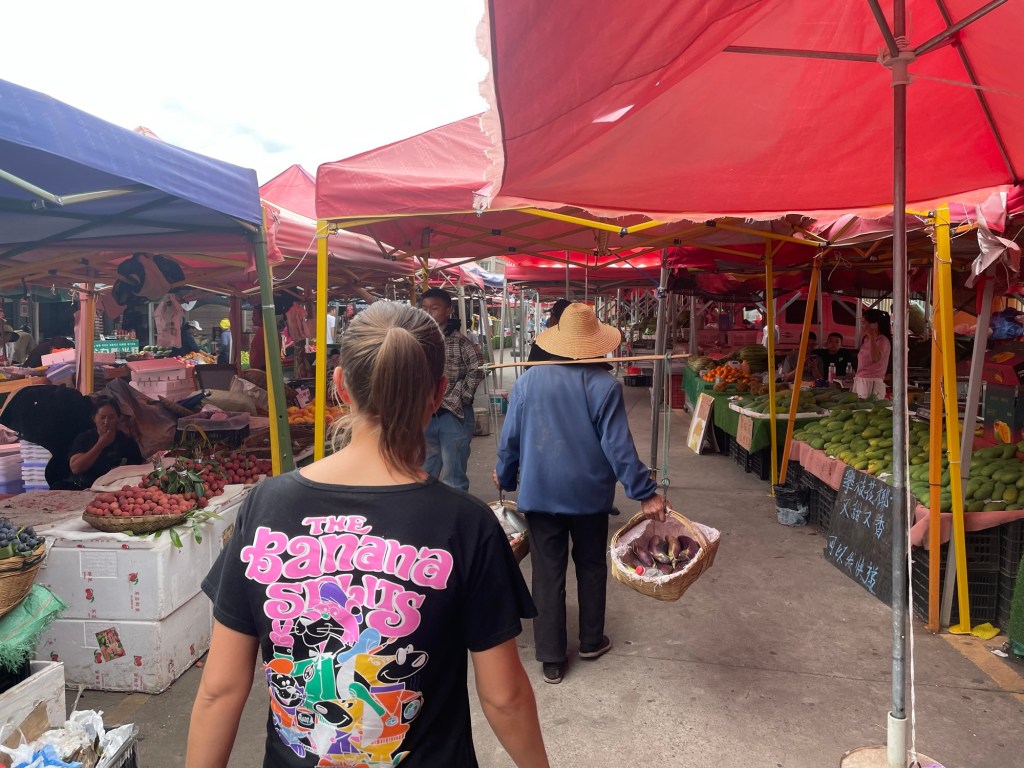 The only other attraction to occupy our day was the market where we enjoyed the variety of fruits and vegetables while observing the animals stacked in cages.