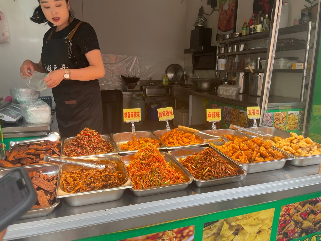 We bought at least four different types of tofu from two sellers. Also a stack of different pastries.