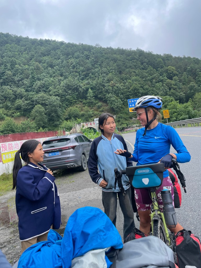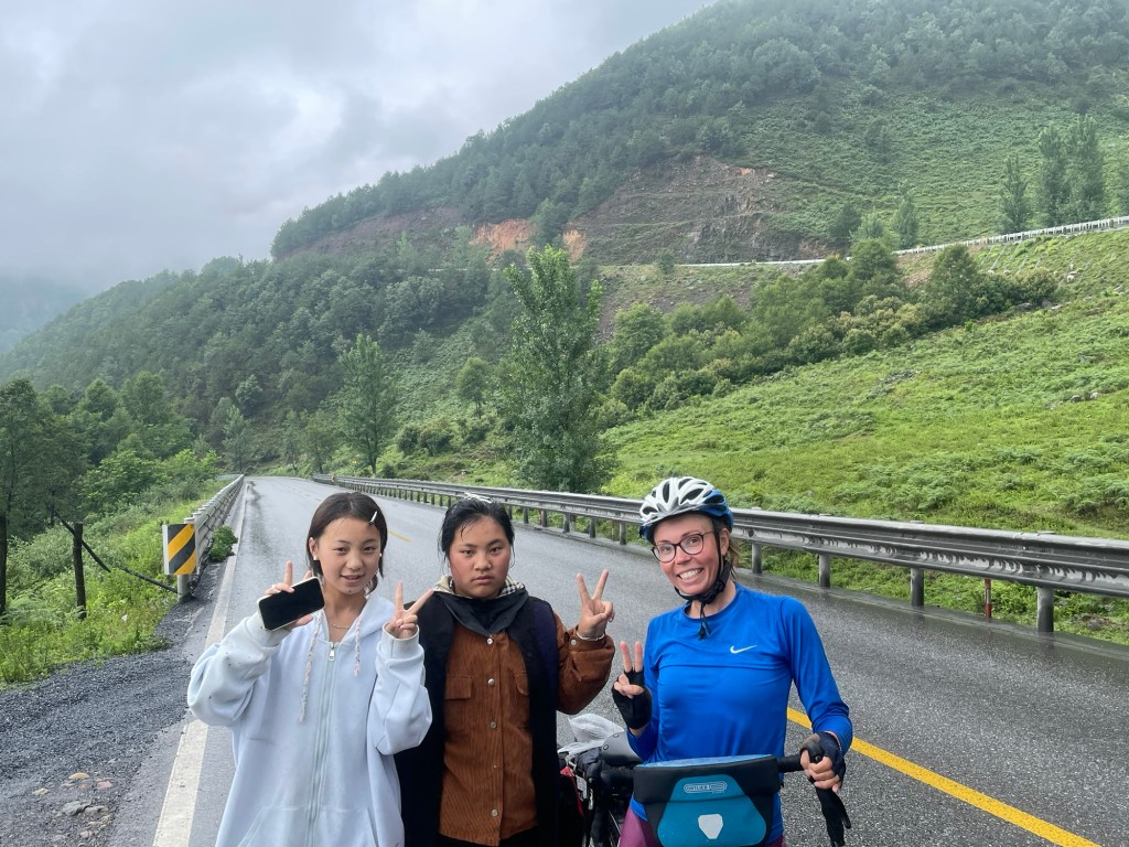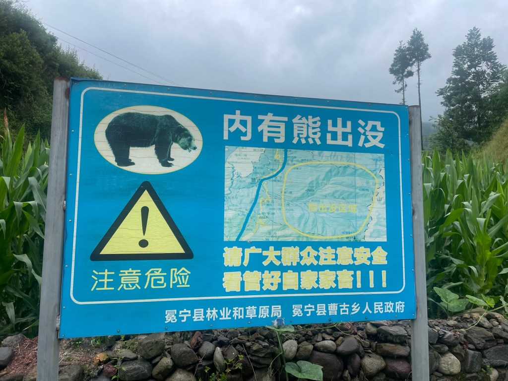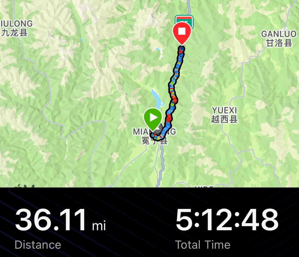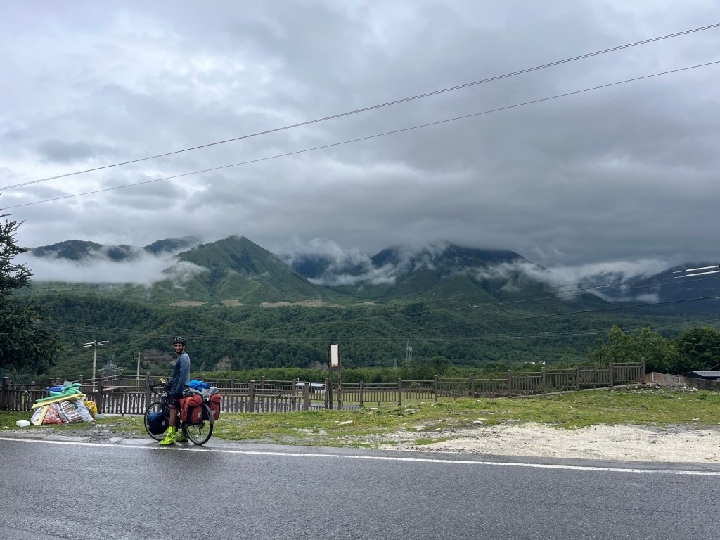As we were packing the rain started again. Still, nothing was gonna stop us today. We headed out of Mianning and towards the G108. Before we even left the town we started going uphill. This first climb started off with a gradual gradient. We were set to rise 460m over 12 km. Thick cloud scuppered any chance of good views of the Xiaoxiang mountain range to our east. An unusually high ridge line and straight set of peaks. The almost 5000m summits were considered inaccessible.