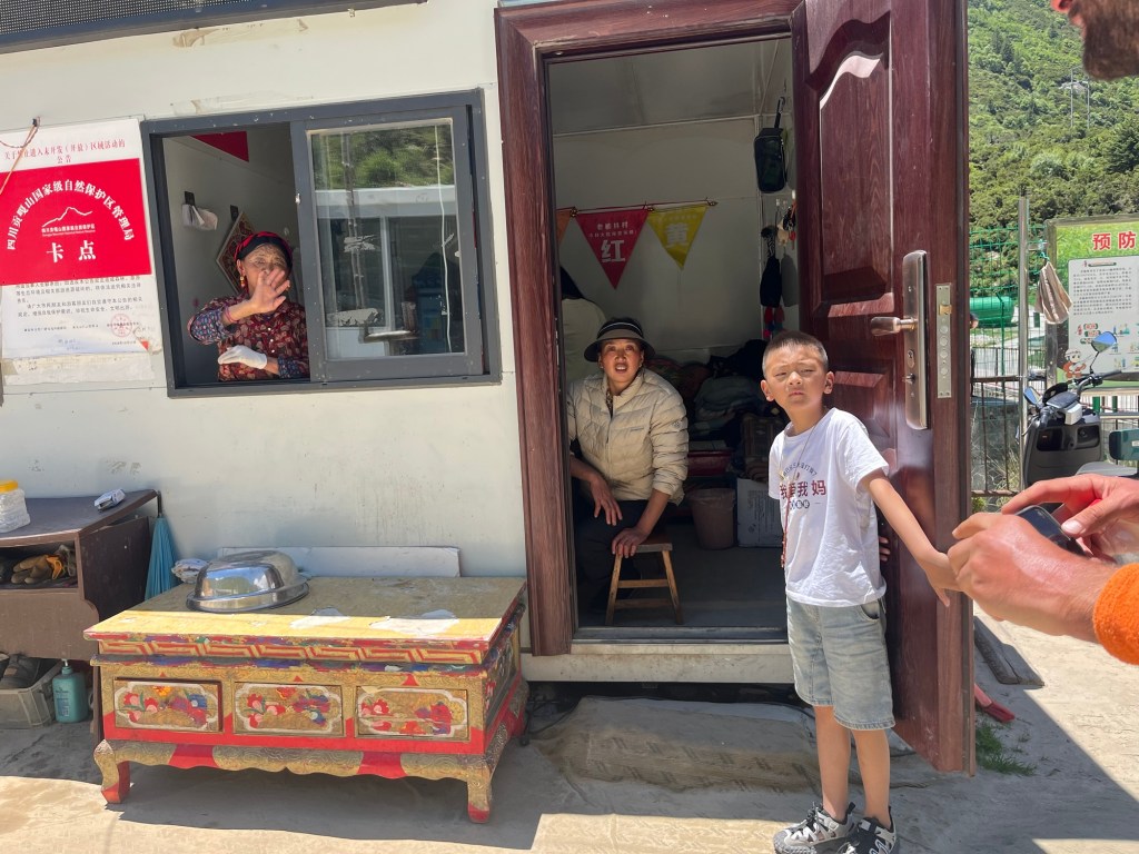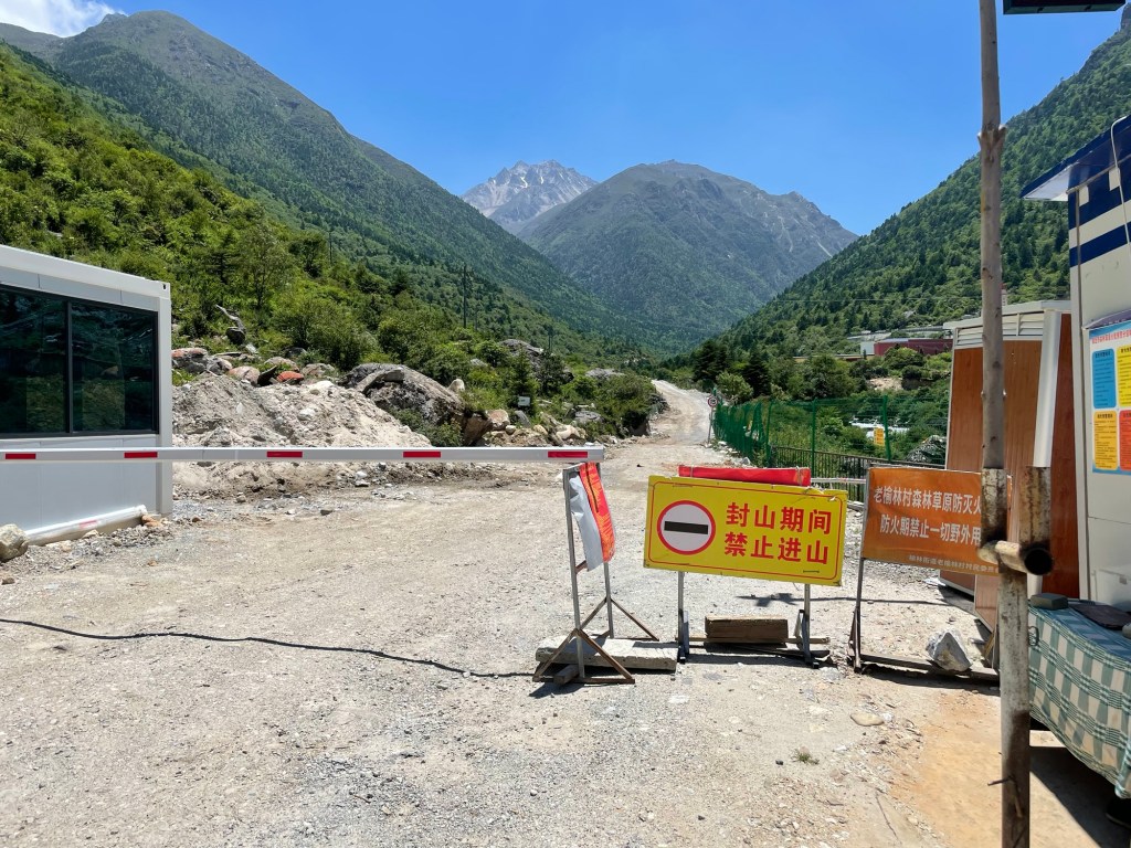 We were now stuck on the road in the middle of nowhere. Mobile phone signal had returned. DiDi didn’t find a car. Only one thing for it. The road was downhill towards Kangding. A truck driver refused our attempt to hitch a ride with a wave of his hand. Next to the road was a large army, or police base. A car pulled out of the gates and we tried our luck. The police officer was happy to help.