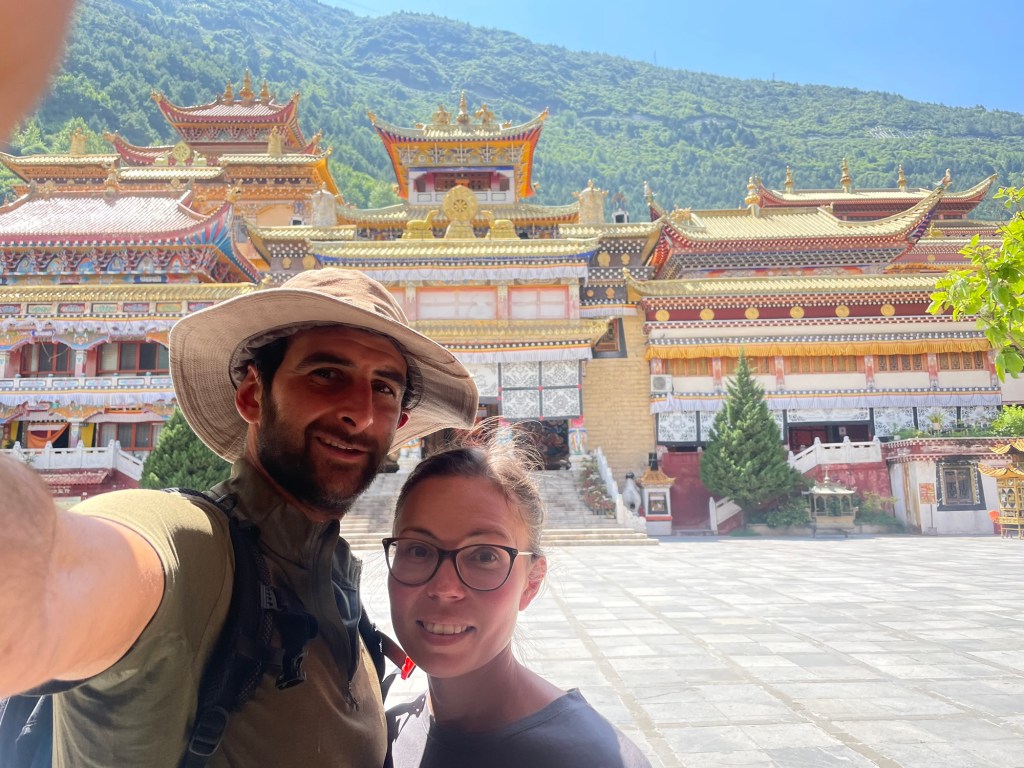 Nanwu monastery was up a steep road. The monastery had a golden roof. It was beautifully maintained. Around 80 monks inhabited it. Tended plants and flowers. It felt far more authentic than Gongga Gompa. It was perplexing why the mountain monastery experience wasn’t more authentic. It had essentially been commercial. Selling noodles and fizzy drinks at a high mark up. Motorbike rides for £20 a pop. They didn’t seem to be doing anything. There had been weird men, not monks, taking the money. Lhamotse Monastery, as it confusingly also transliterated as, on the other hand was glorious. Big halls. Clean. More spiritual.