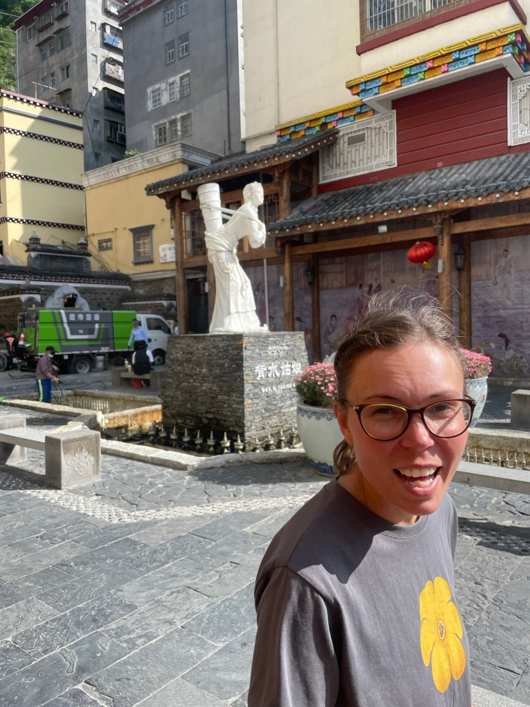 We traipsed back down the Main Street to the famous Love Song Square. The Kangding Love Song was composed by a British man who moved here and fell in love with a Tibetan in 1913. It’s very famous to Chinese people. We’d never heard of it. There were fancy hotels here. We checked in to one, after faffing about for a moment.