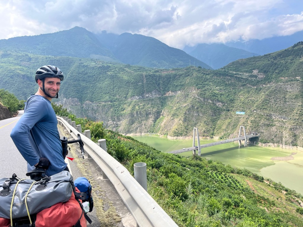 The road wound up and round the valleys that led into the deep gorge of the Dadu River. It was taking us further and further uphill, more and more steeply. The gradients weren’t the hard part, rather the fact it was already 30+C and the humidity was ridiculous. Neither of us could say we were really ‘feeling’ it. Having taken such a long time off the bikes had made it hard to find a rhythm again. The benefits of our altitude adaptation were no match for the heat.