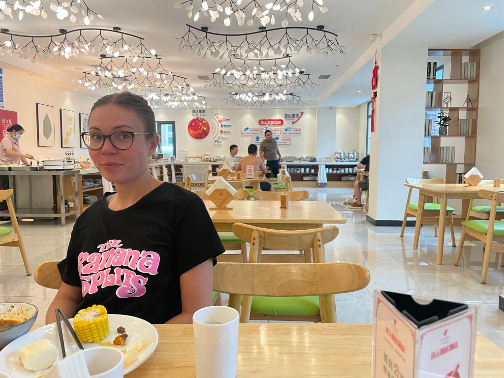 Uncooked potato was a popular dish. Historically, the starchy food has been treated as a vegetable, not a carbohydrate. We’d become accustomed to it. Everything in our meal was so spicy. The woman brought us a complimentary dessert to try, for free. Wonderfully cooling our senses down. We found the restaurant on the WeChat mini app ordering system and paid for it.
