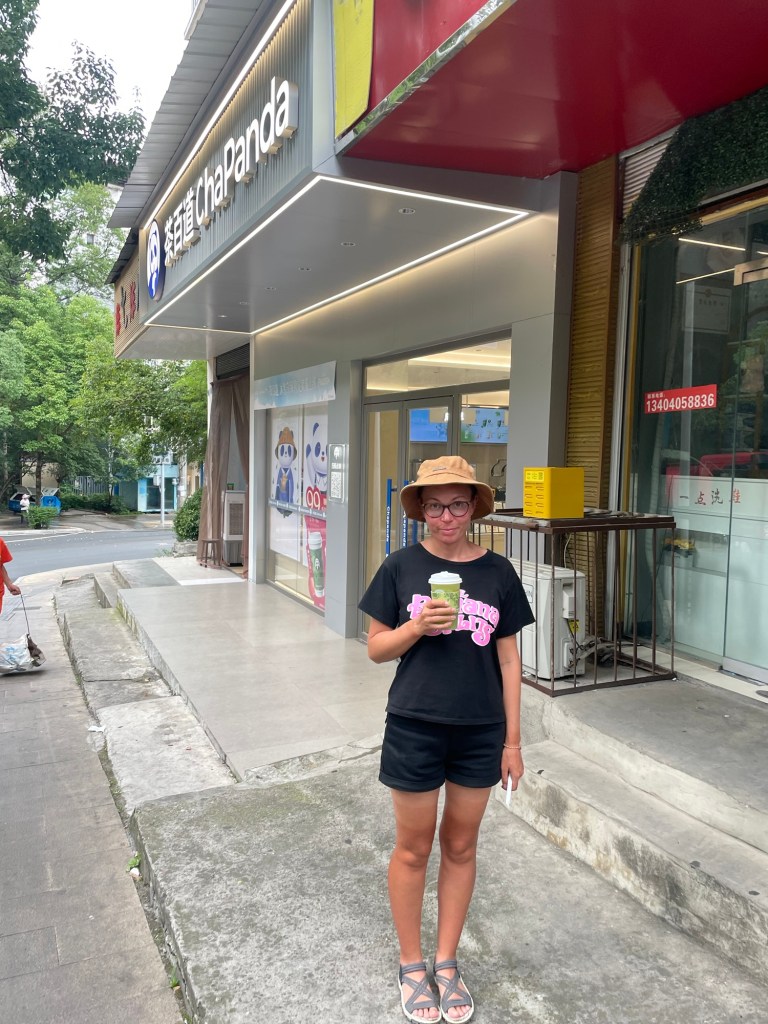 Hanyuan was spread out all over the mountainous peninsula. Seeking something to eat that wasn’t hotpot, we took a taxi up the hill. ChaPanda lured us in for a cold beverage, then we found a little restaurant selling tofu and chips. Jonathan’s stomach had turned against eating typical fried food in the evenings. Two young children observed us eating as they finished up their ‘ice salads’. Blatantly modernised but a traditional Chinese dish that contained ice, tapioca and fruit.