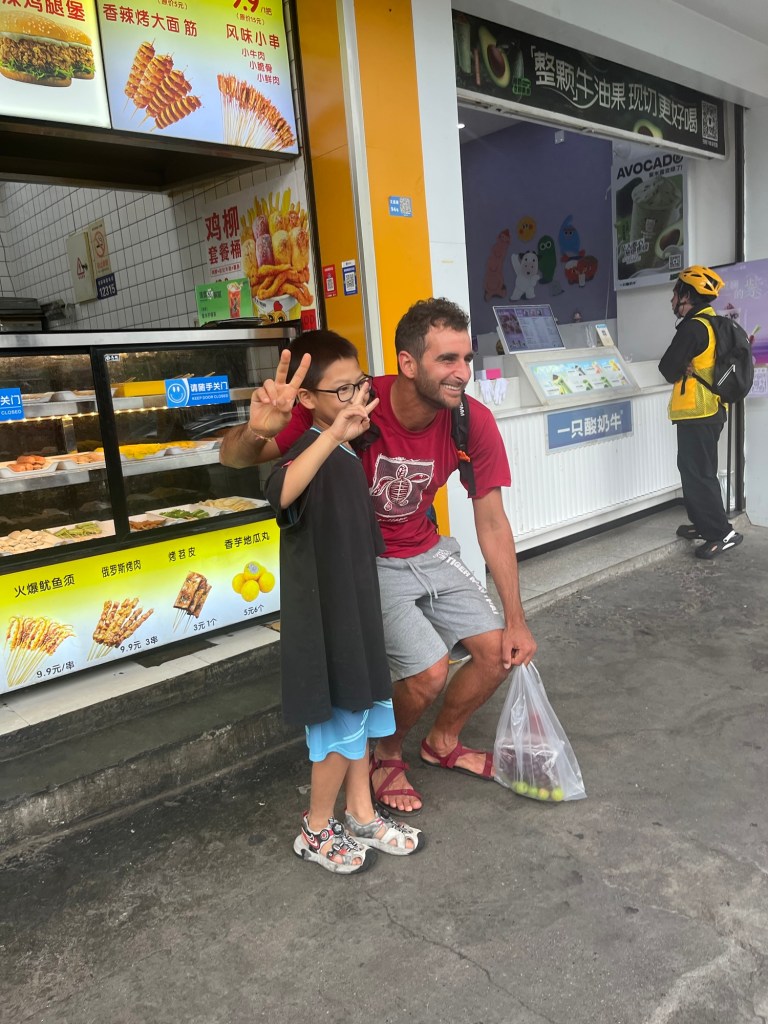 Bowls of cling film covered noodles indicated a whopping four different types to choose from. Frankie pushed the boat out and opted for the flat wide ones. One of the widest arrays of breakfast foods we’d seen presented. Now with nowhere to go, we took our sweet time pecking at all the various foods. Chinese food inherently lacked sweetness. A good thing probably. The closest to sweetness was fruit and steamed buns.