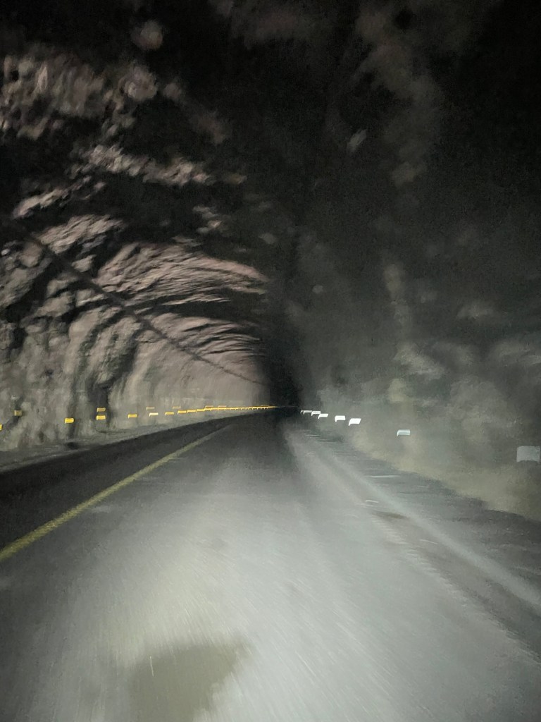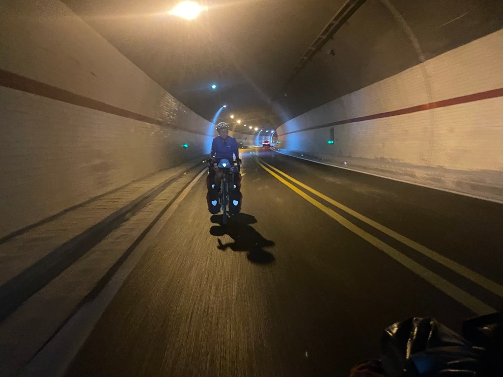 More long dark tunnels, one without concrete lining, preceded our descent down to the G245. Frankie’s crappy front light wouldn’t even turn on anymore. The button was jammed. The last had so many speed reducing bumps we felt like we would fall off any second. Lorries barricaded the big road at the bottom, police attempts to organise them were entirely in vain. We stopped for a cold(ish) drink.