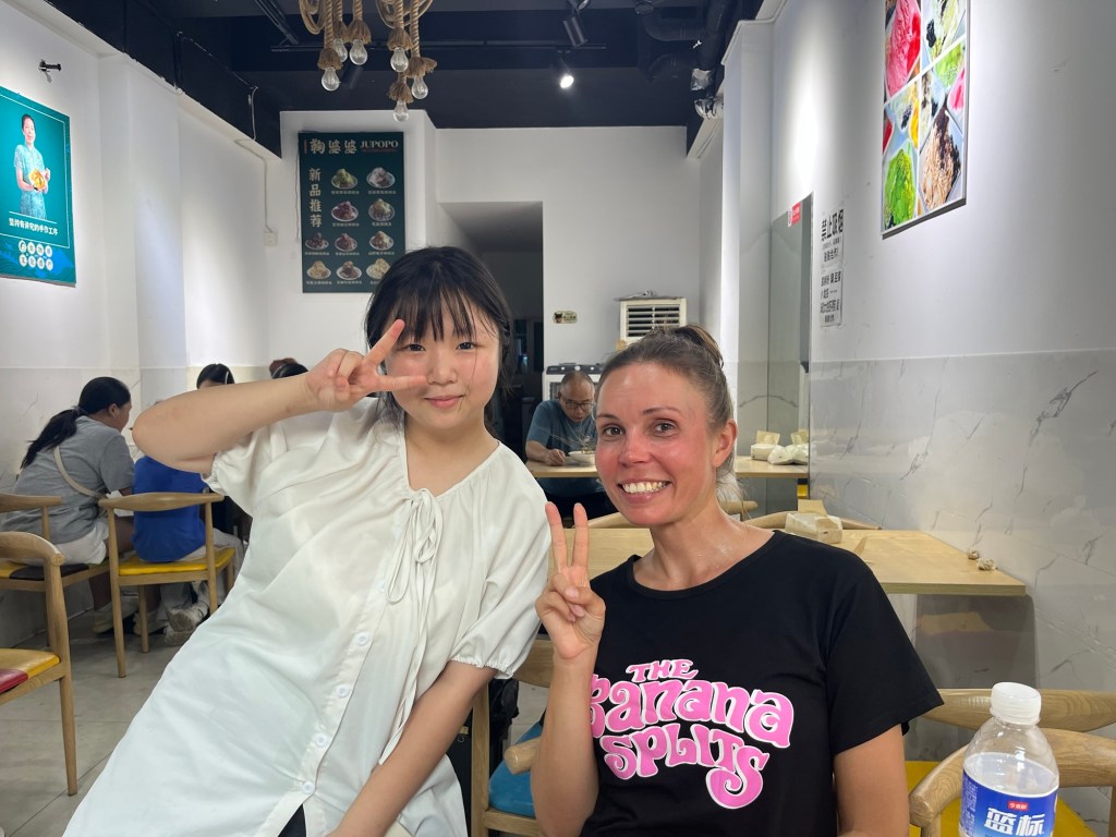 Shawan was fun to walk around. We were greeted warmly and called out to, the most amusing being a minibus full of firefighters. We arrived just as a little night market was setting up. Naturally we feasted on barbecue before finding a tasty ice powder dessert. A collection of glutinous rice, chewy bits and a caramel sauce.