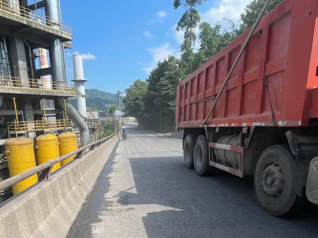 The heavily funded cycle path took us across a town on stilts. After traversing a section of road with gorgeous overhanging cliffs, predictably, we reached a dam. The heat continued to be oppressive. The vegetation drove the humidity up. It was approaching dangerous. We just tried to drink as many fluids as possible. The road turned to melt proof concrete. Lorries happily passed us closely as we left the river behind and headed up into jungle. High up above us we could see the trail of trucks carving out the way to come.