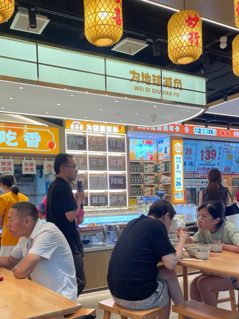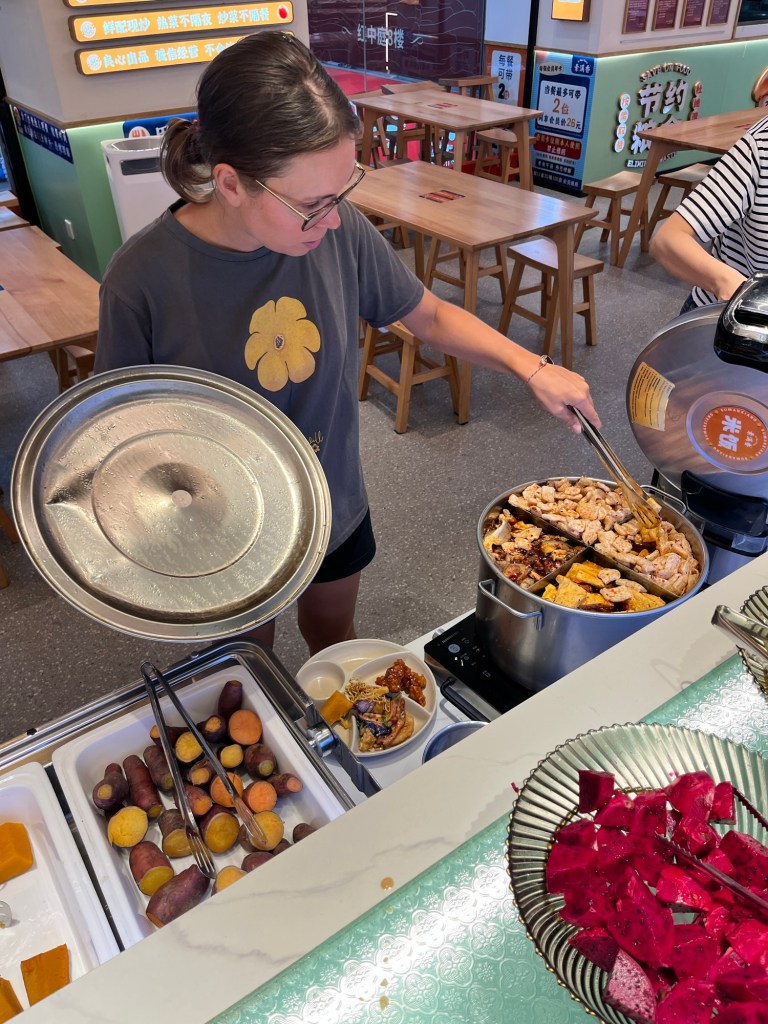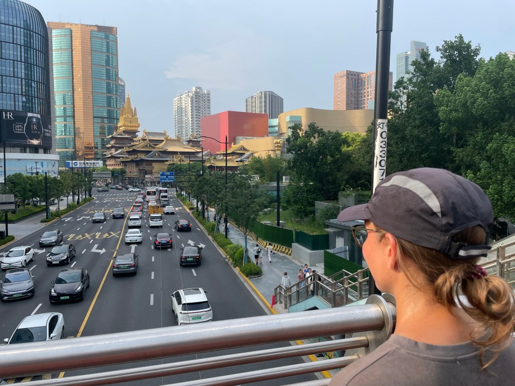 Intrigued by photos of Jing’an temple we went to take a look. Not fancying the entrance fee we briefly observed from a walkway, then took the metro Zhongshan Park to eat at another branch of our favourite vegan buffet, Su Man Xiang. This one was slightly more cult like and the staff would occasionally preach over the microphone to the many guests. Of course we had no clue what they were saying.